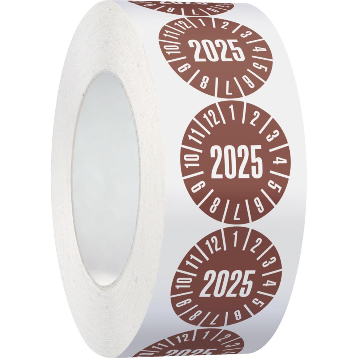 Auswahl: Prüfplakette 2025, braun, Folie, ablösbar, Ø 35mm, 500/Rolle