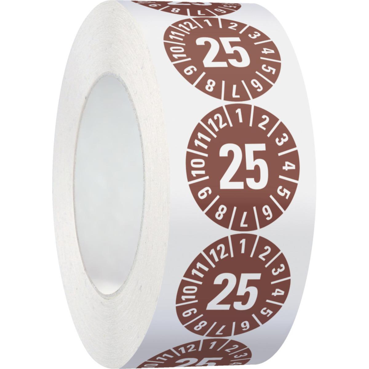 Auswahl: Prüfplakette 25, braun, Dokumentenfolie, selbstklebend, Ø 35mm, 500/Rolle