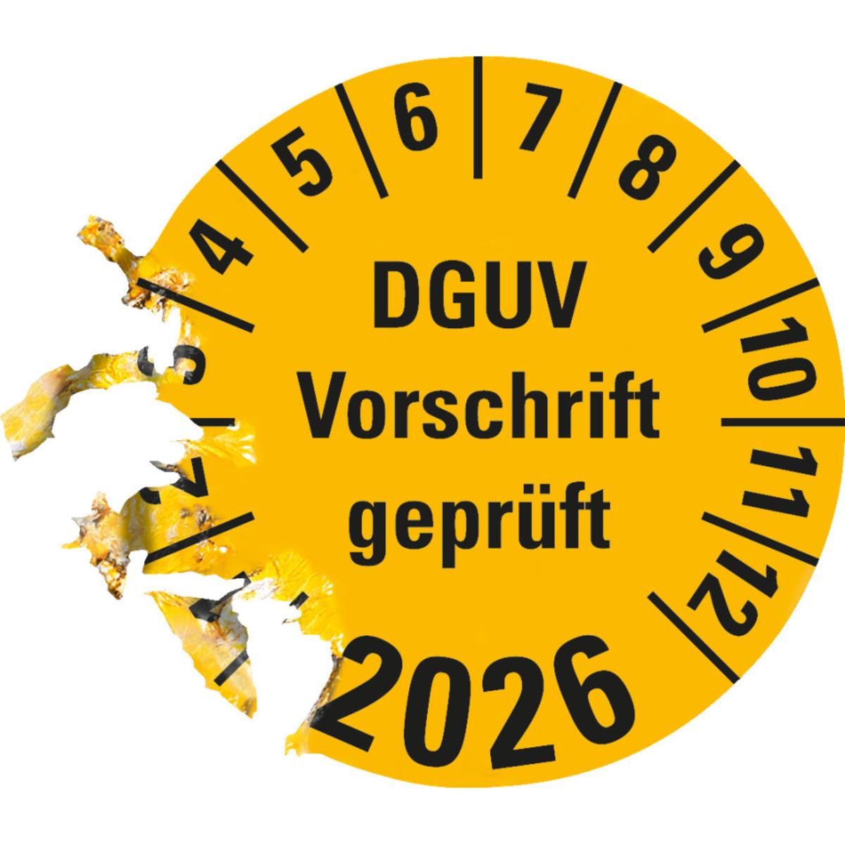 Auswahl: Prüfplakette DGUV Vorschrift geprüft 2026, gelb, Doku.folie, Ø 30mm, 18/Bogen