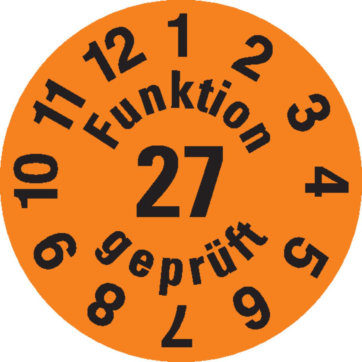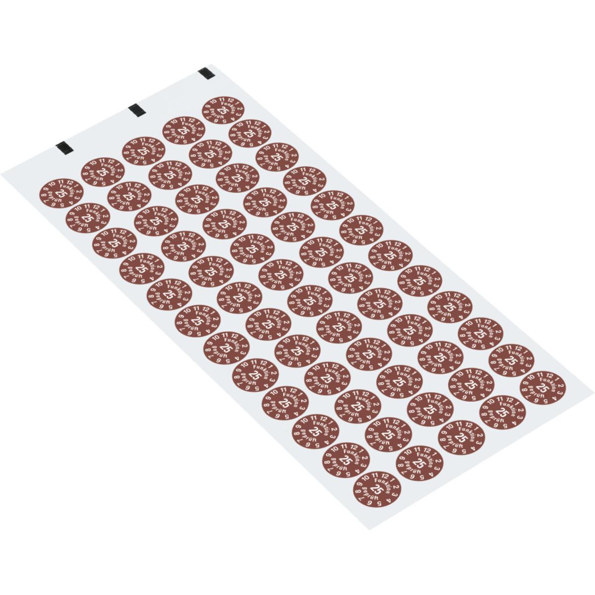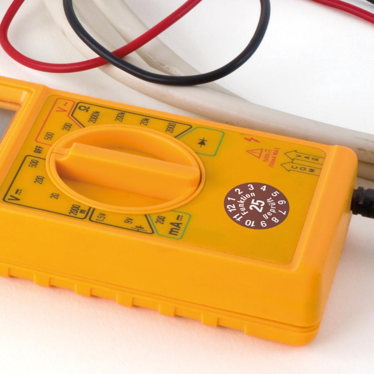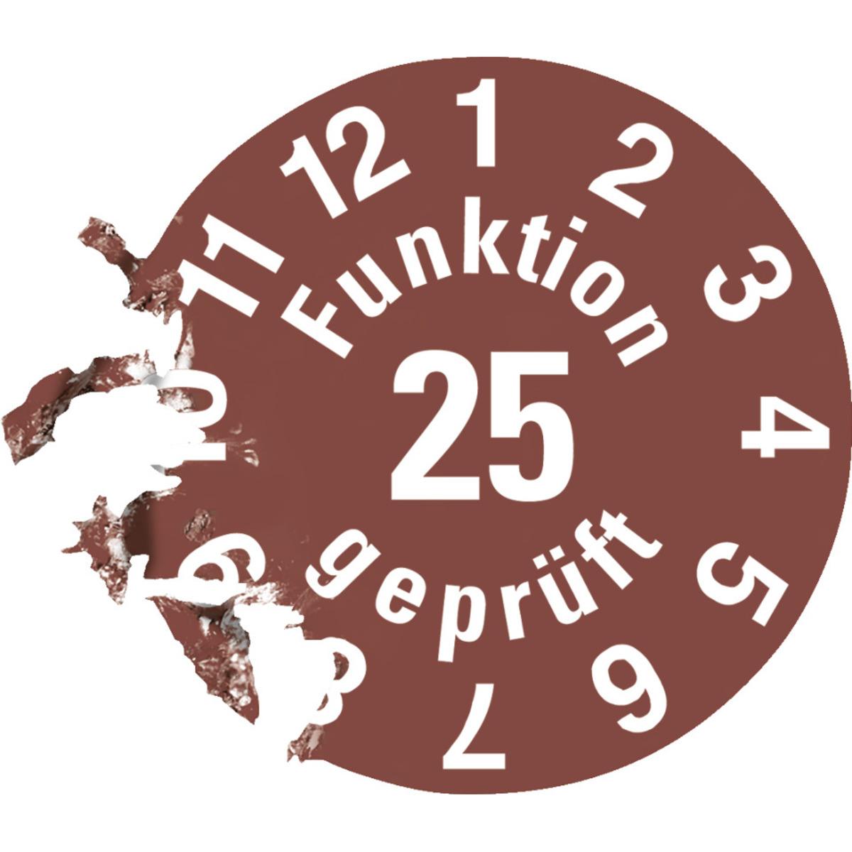Auswahl: Prüfplakette Funktion gepr.25, braun, Dokumentenfolie, selbstkl., Ø 15mm, 60/Bogen