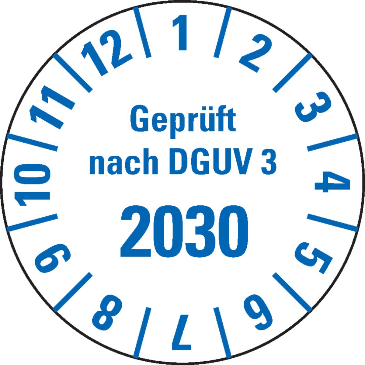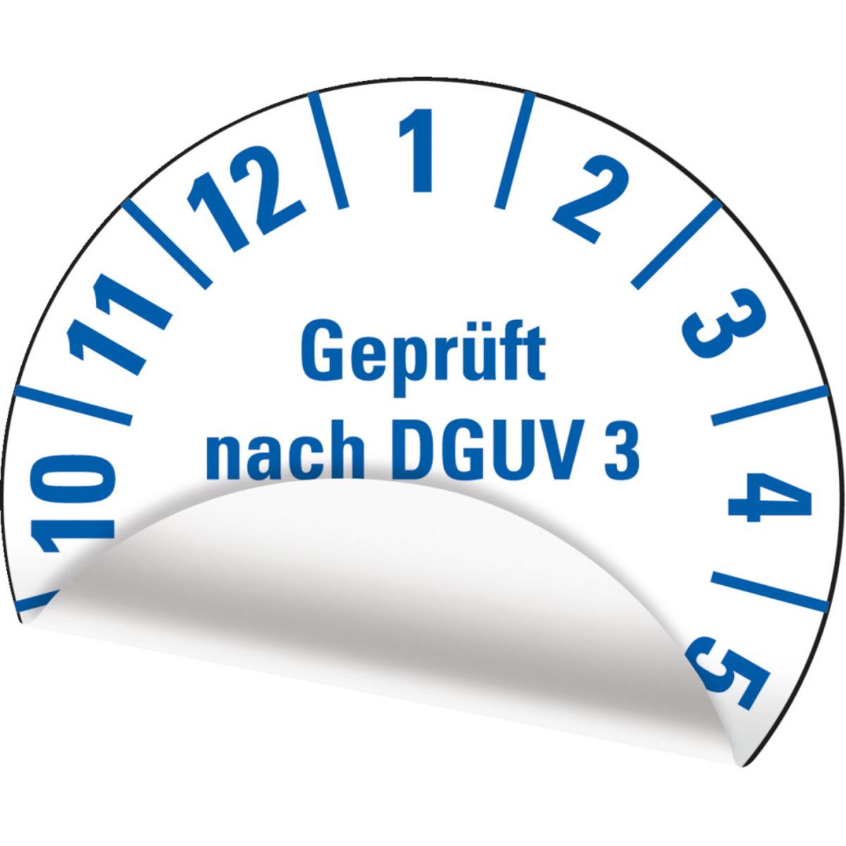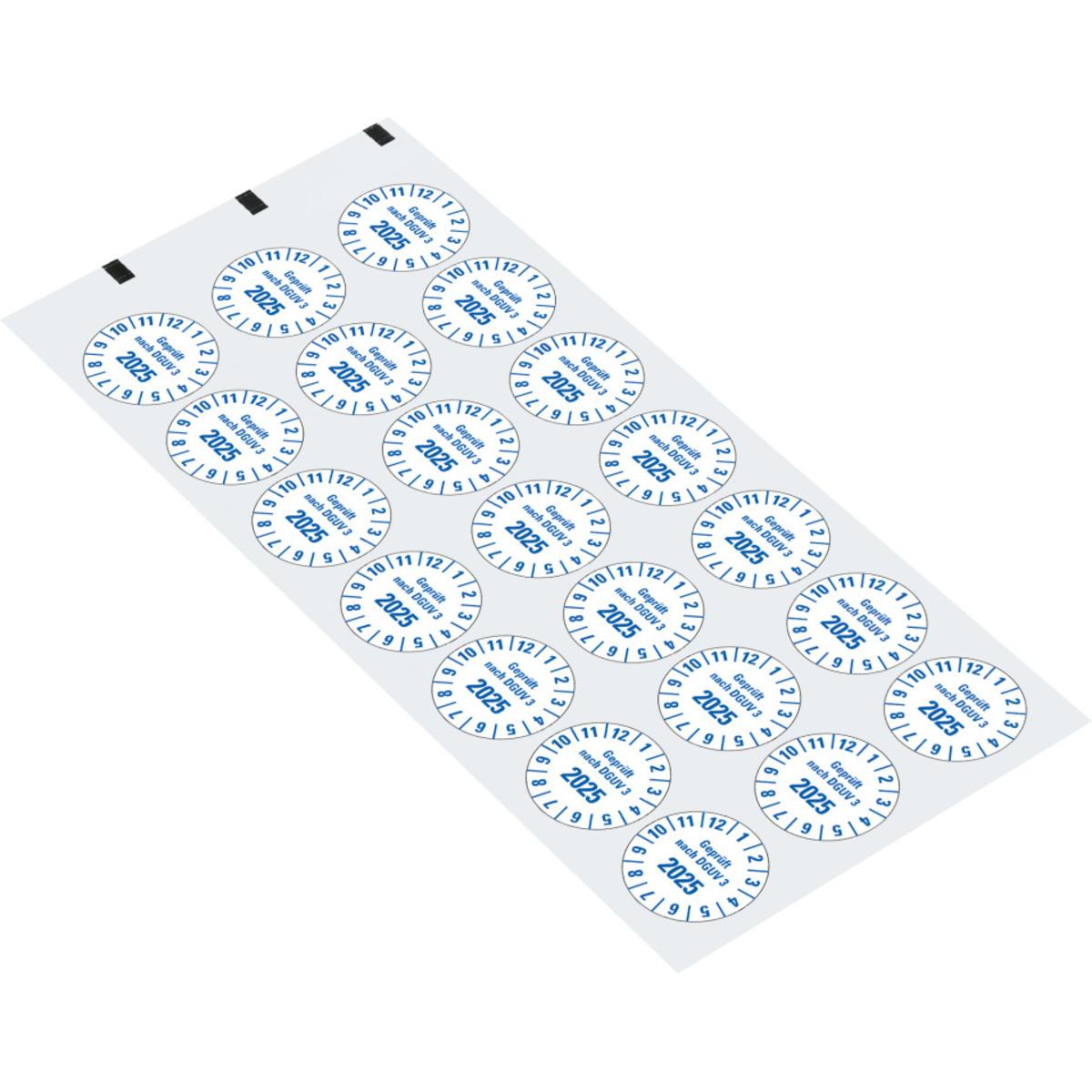 Auswahl: Prüfpl. Gepr.n. DGUV Vorschrift 3 2025, weiß, Folie, m.Spezialkl., Ø25mm, 21/Bogen