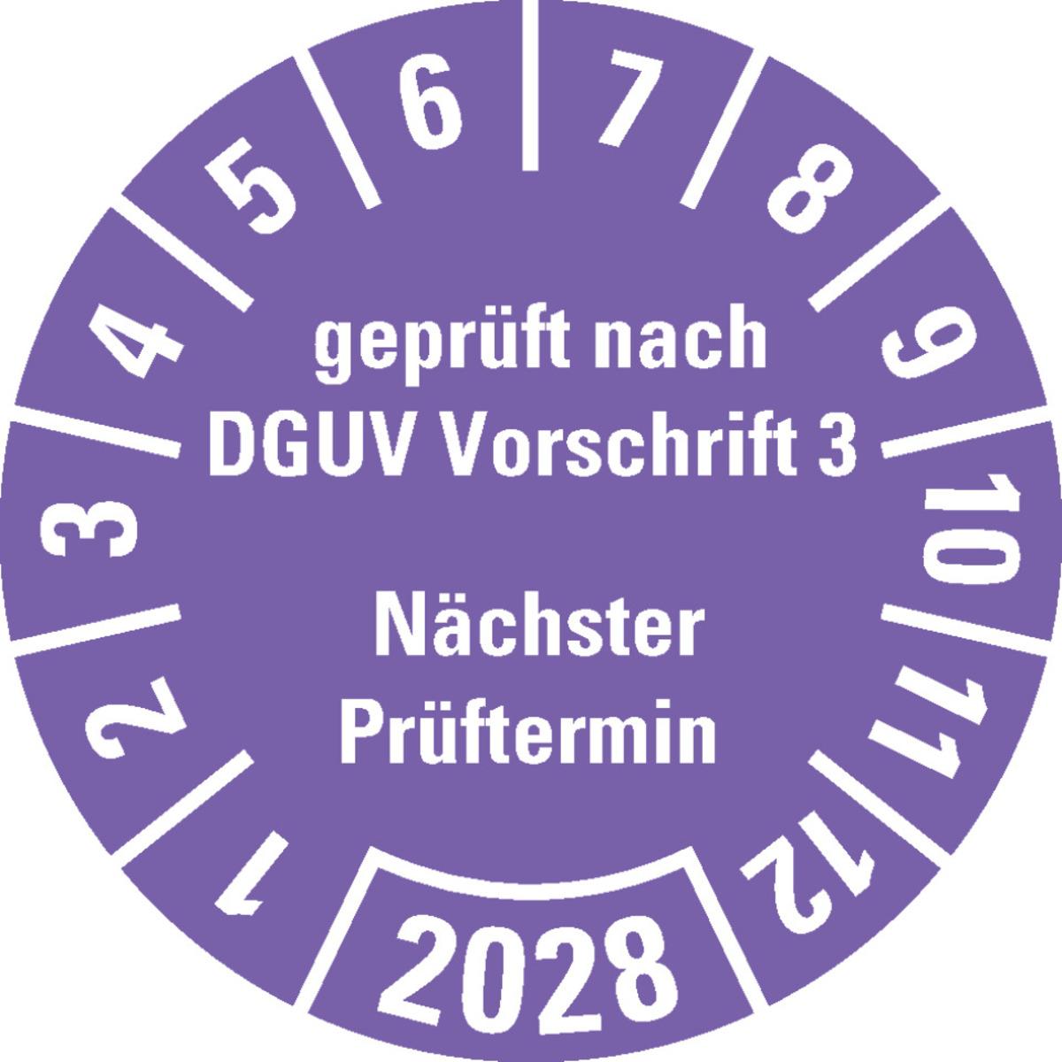 KSIGN Jahresprüfplakette geprüft nach DGUV Vorschrift 3, nächster Prüftermin Ø 25 mm Dokumentenfolie Rolle