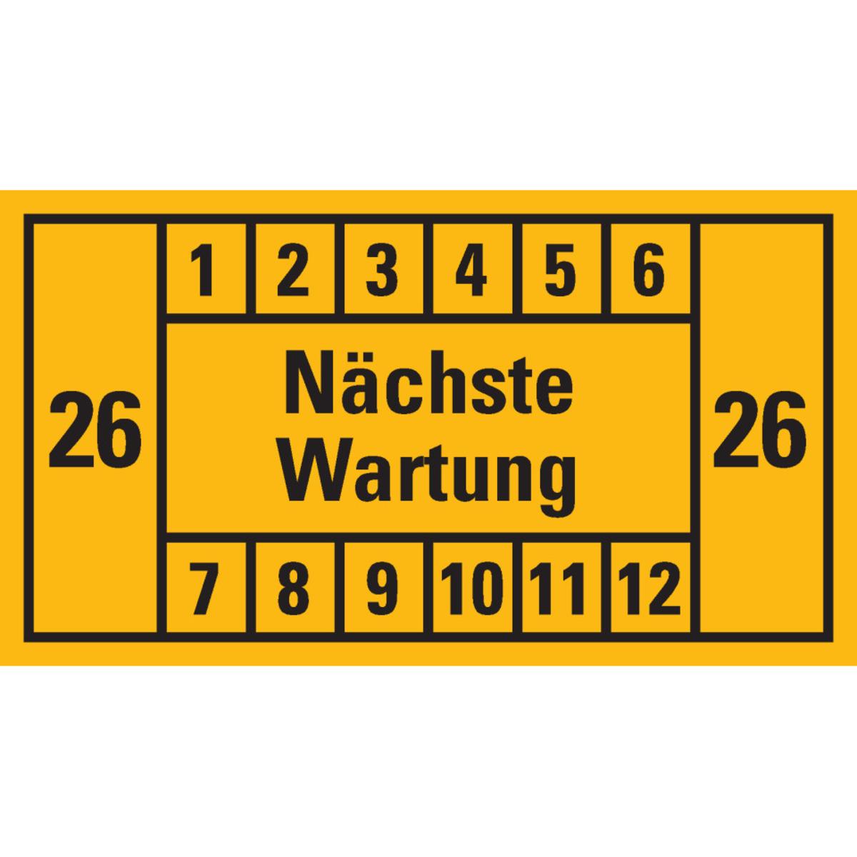 Auswahl: Prüfplakette Nächste Wartung 26, gelb, Dokumentenfolie, 45x25mm, 12/Bogen