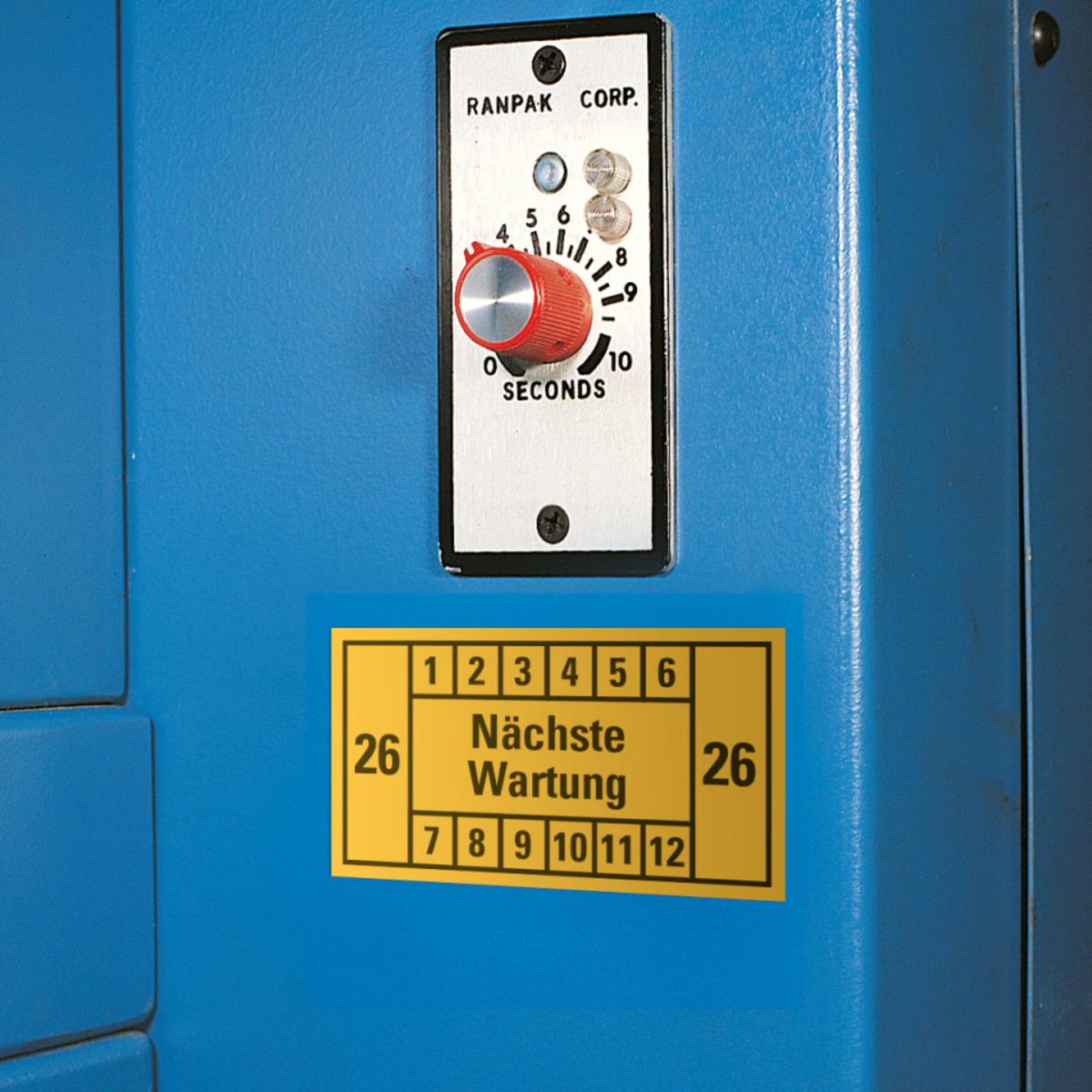 Mit der Jahresprüfplakette "Nächste Wartung" behalten Sie Inspektionen/Wartungsstand fest im Blick und stellen die Einhaltung der Prüffristen sicher.