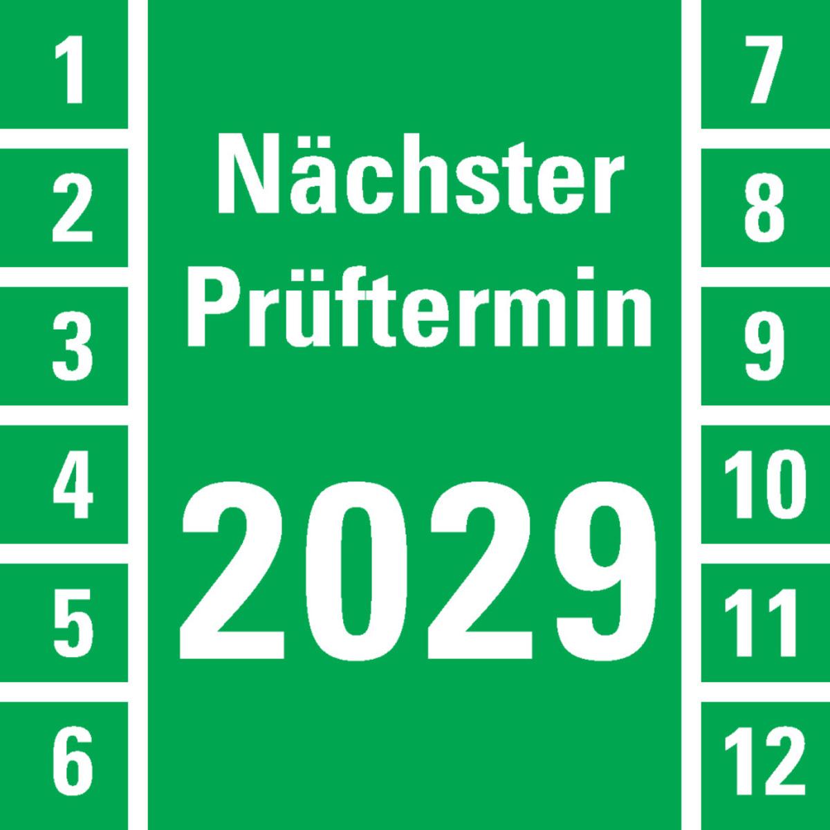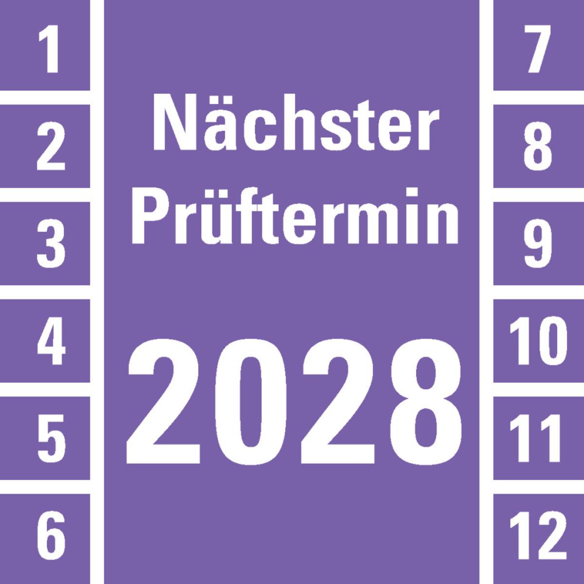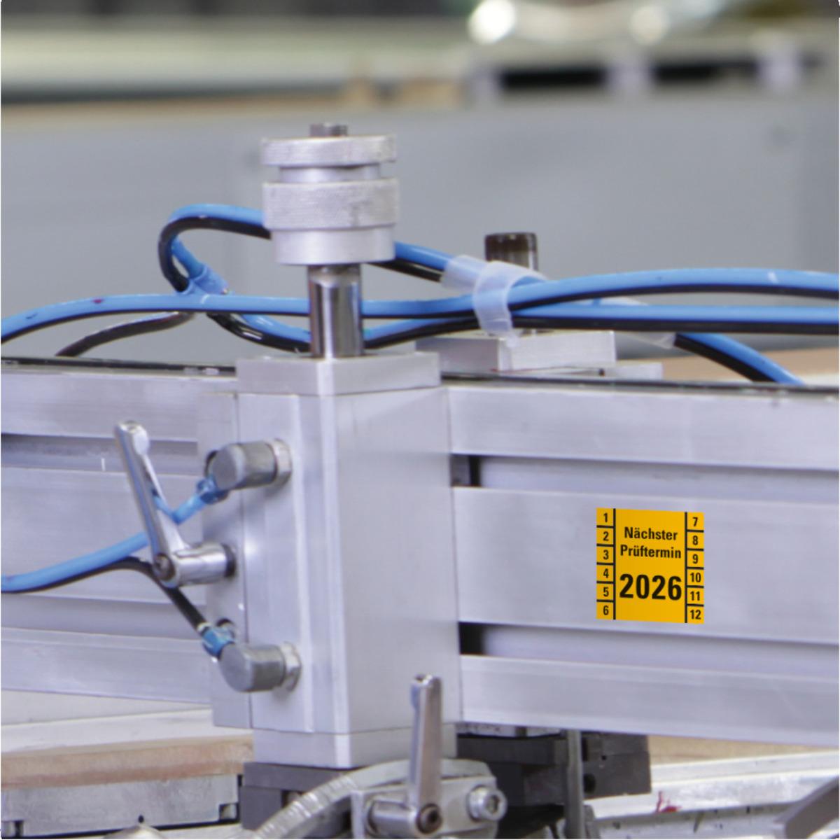 Mit der Jahresprüfplakette "Nächster Prüftermin" behalten Sie Inspektionen/Wartungsstand fest im Blick und stellen die Einhaltung der Prüffristen sicher.