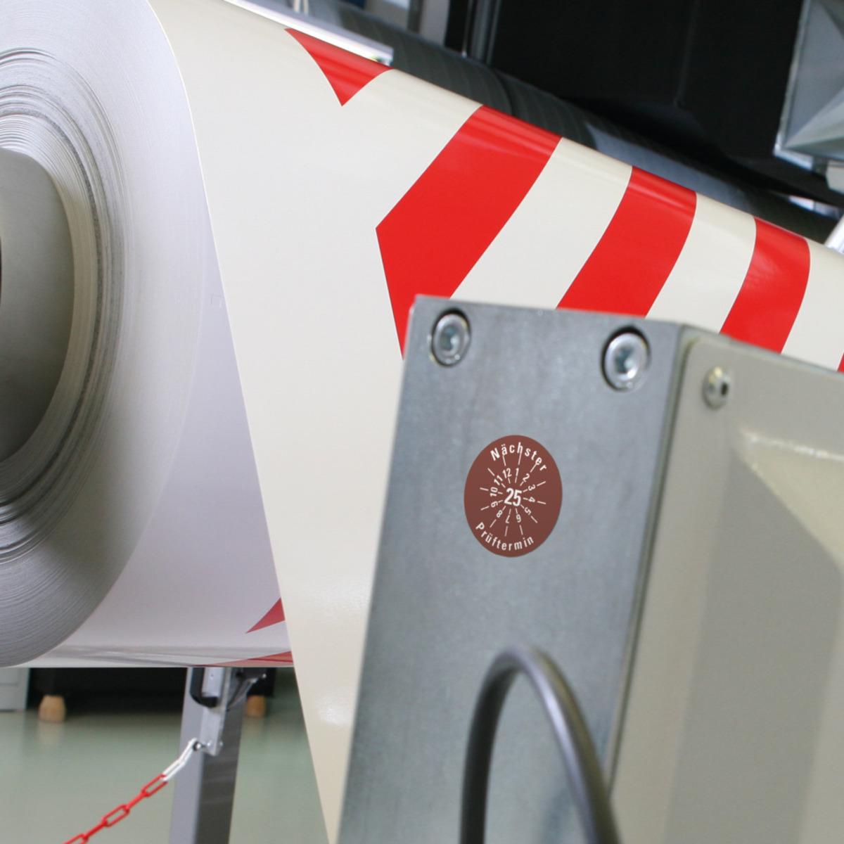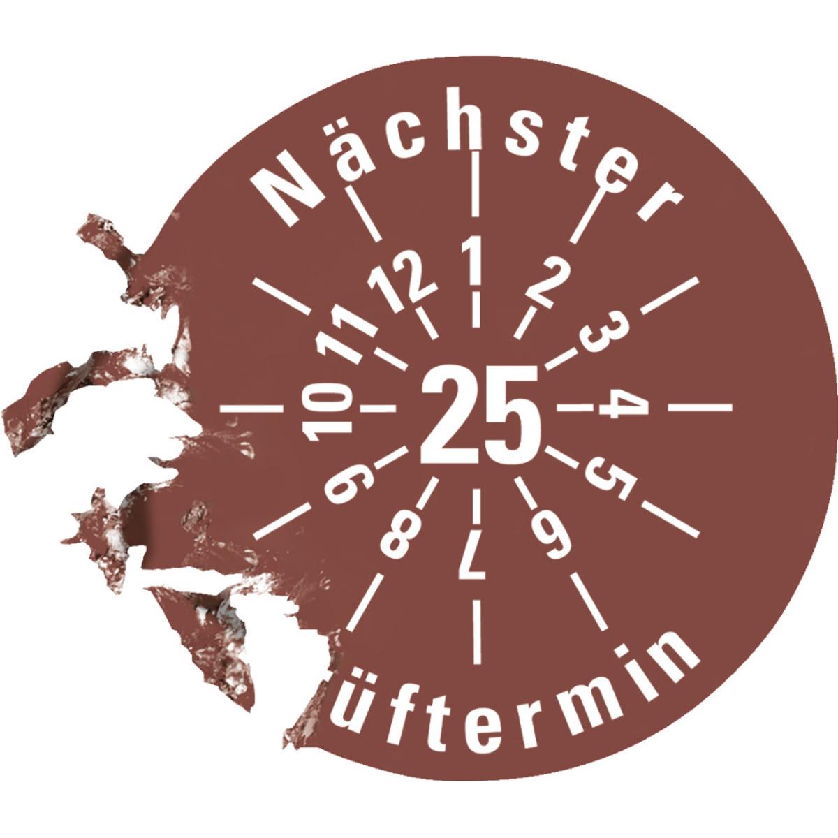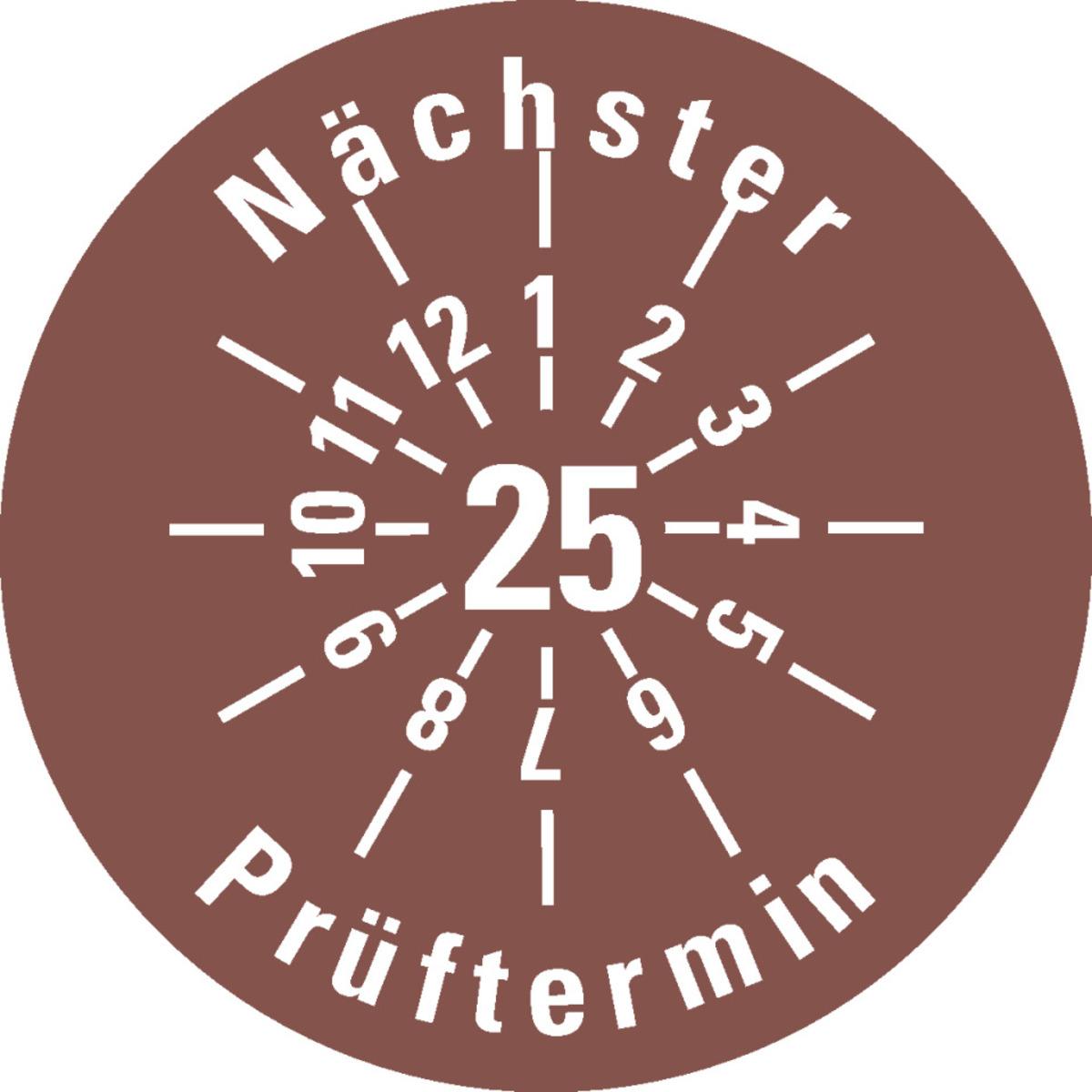 Auswahl: Prüfplakette Nächster Prüftermin 25, braun, Dokumentenfolie, Ø 30mm, 18/Bogen