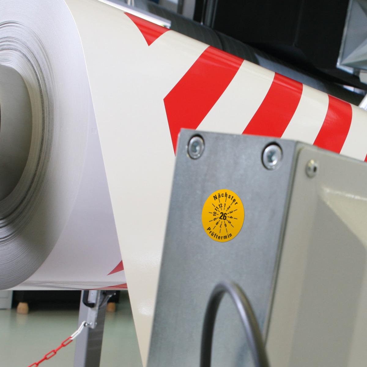 Mit der Jahresprüfplakette "Nächster Prüftermin" als Kranztext behalten Sie Inspektionen/Wartungsstand fest im Blick und stellen die Einhaltung der Prüffristen sicher.