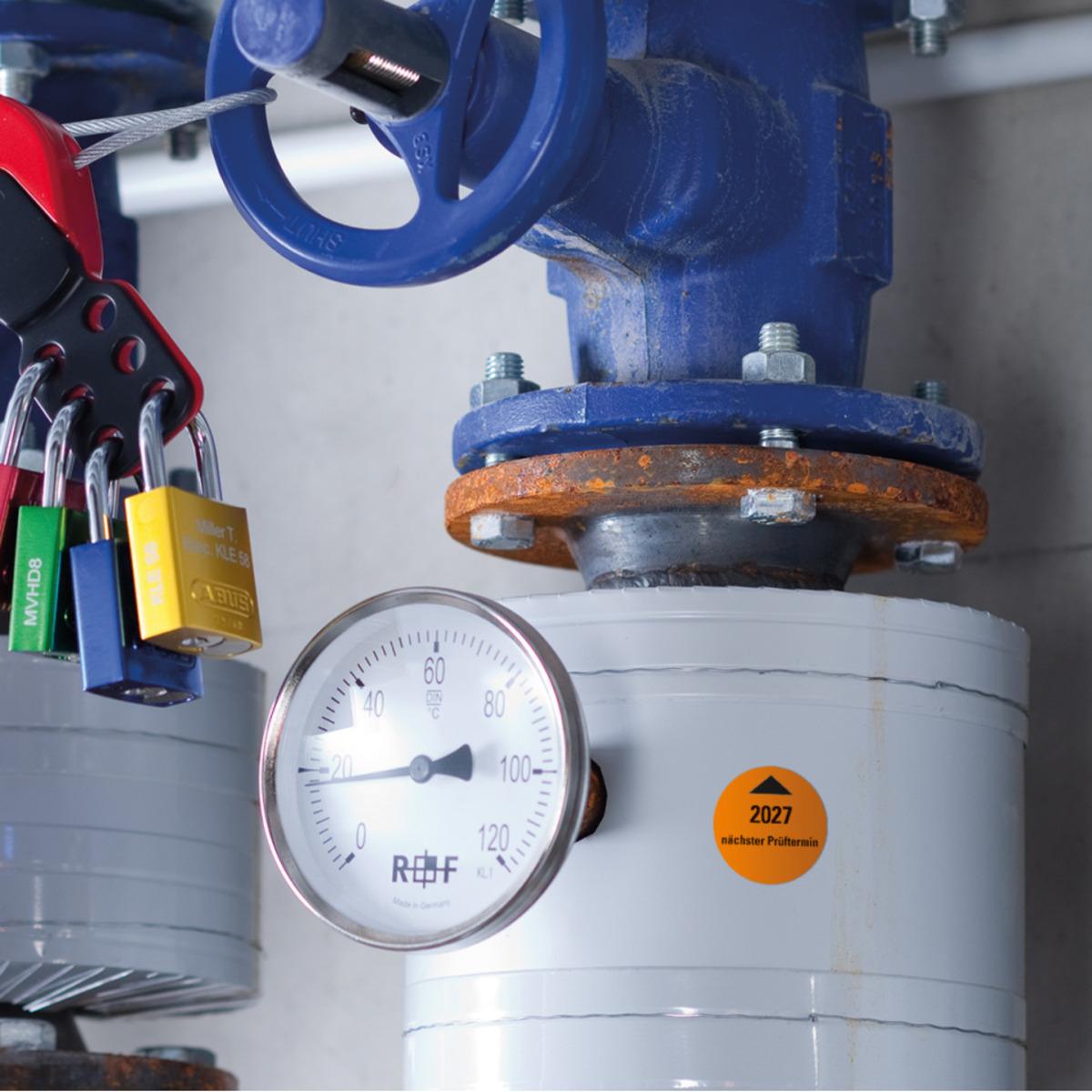 Mit der System-Jahresprüfplakette "nächster Prüftermin" behalten Sie Inspektionen/Wartungsstand fest im Blick und stellen die Einhaltung der Prüffristen sicher.