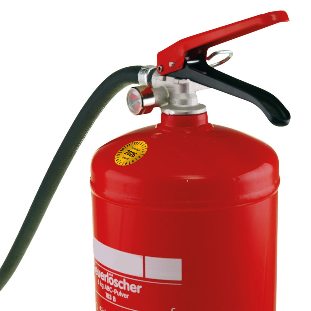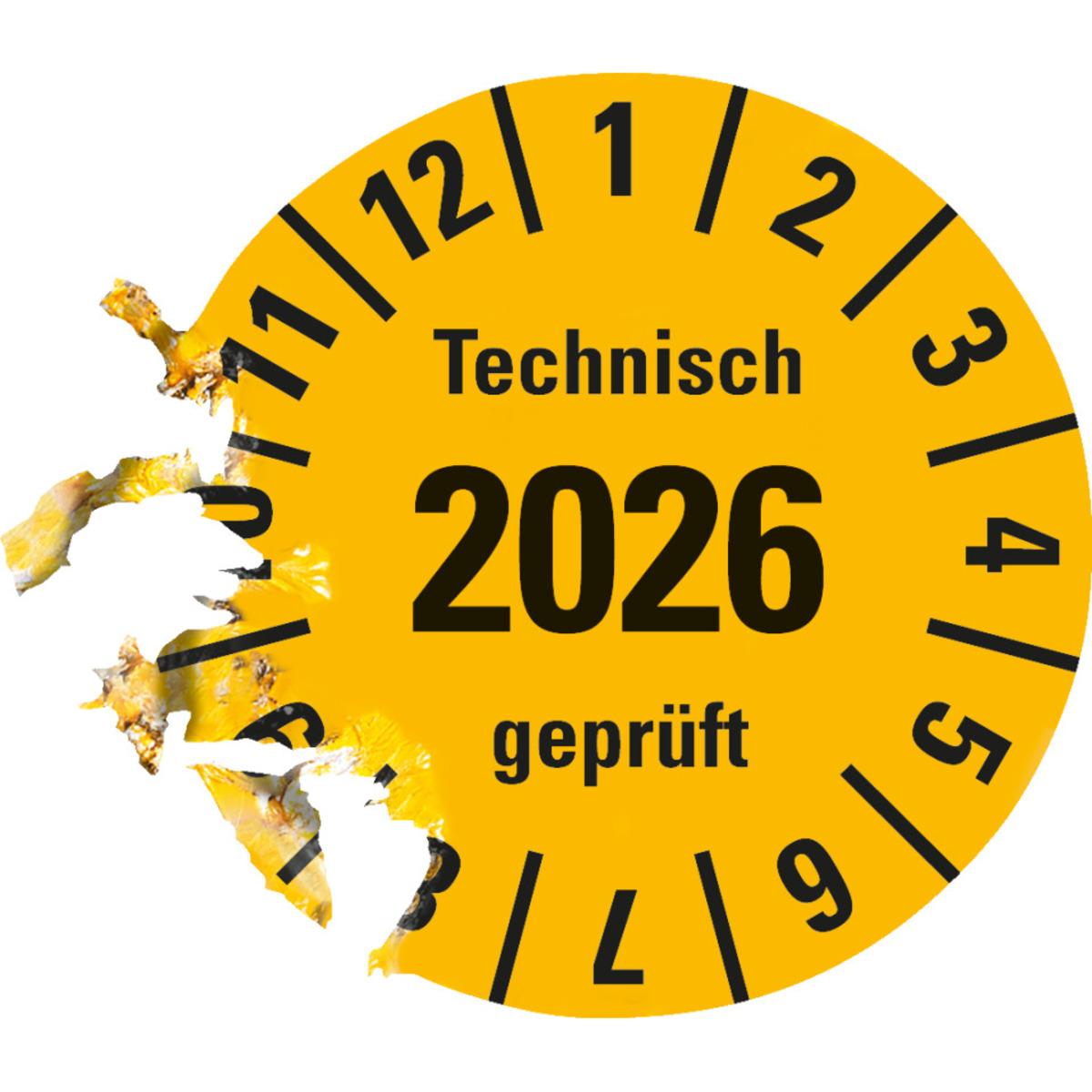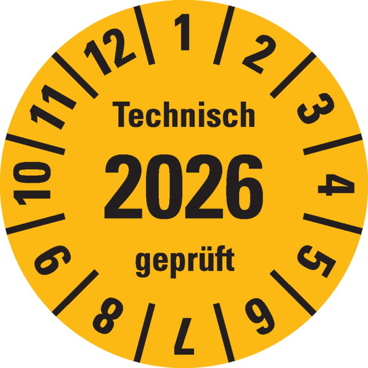 Auswahl: Prüfplakette Technisch geprüft 2026, gelb, Dokufolie, selbstkl., Ø 30mm, 18/Bogen