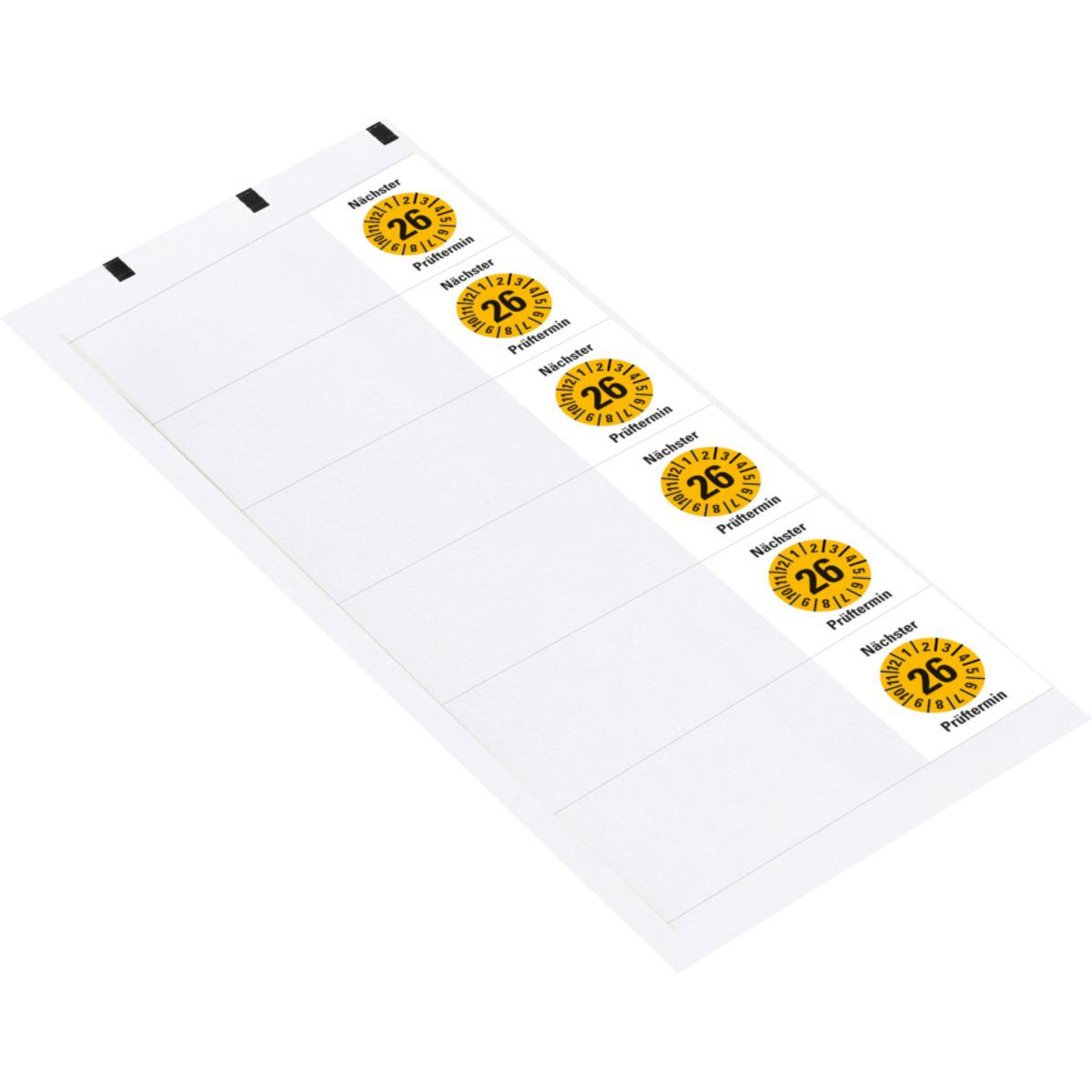 Auswahl: Kabelprüfplakette Nä.Prüftermin 26, gelb, Folie, selbstkl., 57x25mm, 6/Bogen