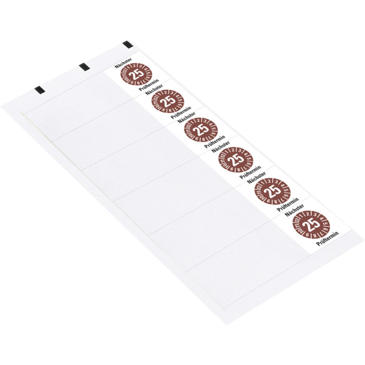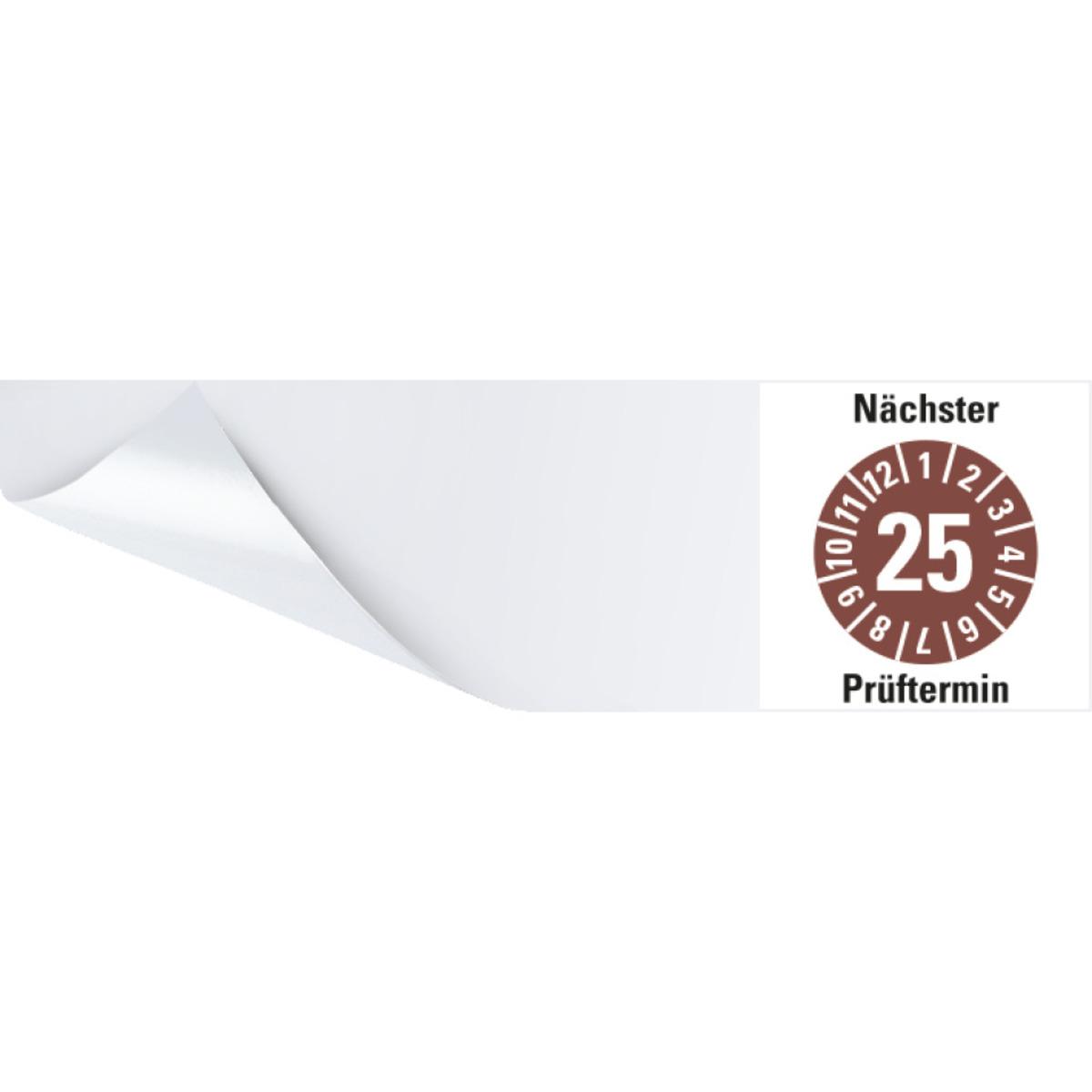 Auswahl: Kabelprüfplakette Nä.Prüftermin 25, braun, Folie, selbstkl., 95x25mm, 6/Bogen