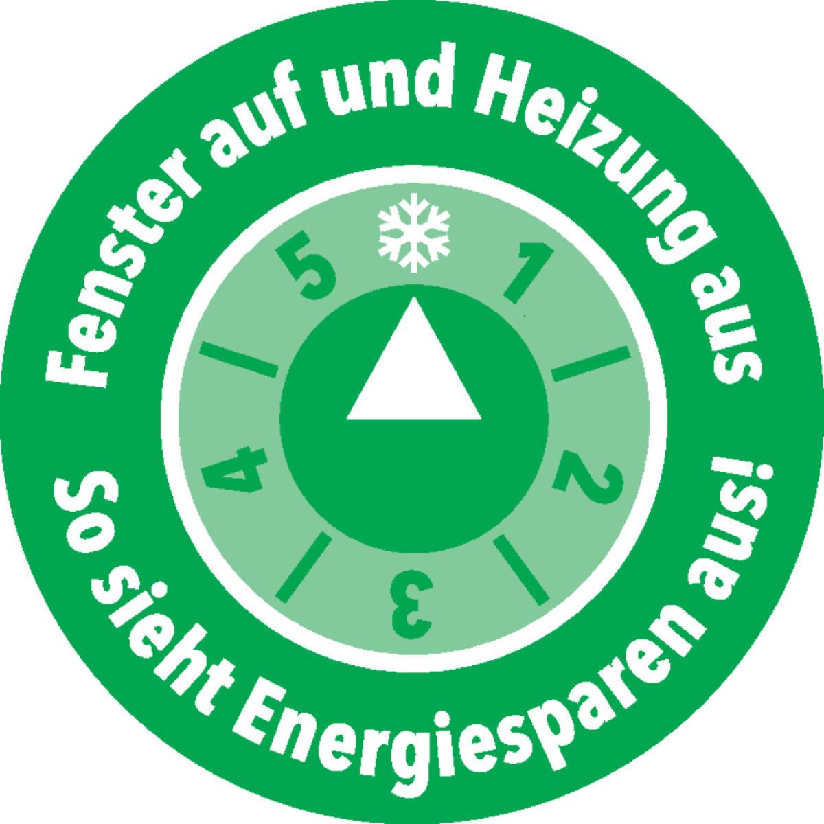 Auswahl: Klimalabel Fenster auf und Heizung aus-so sieht Energiesparen aus, Folie, Ø100mm