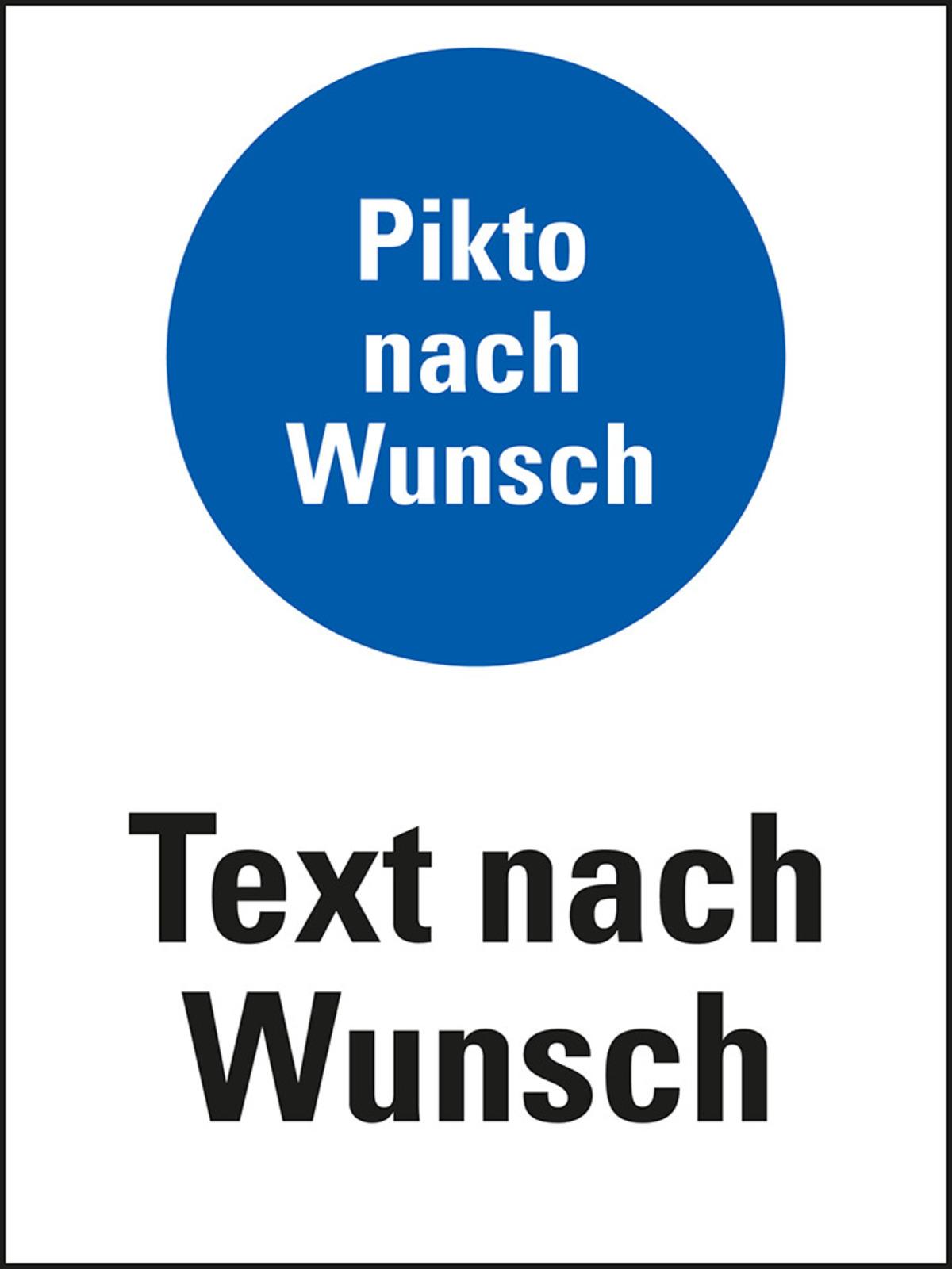 Auswahl: Kombischild, Text u.Gebotspikto nach Wunsch, ASR/DIN/ISO, Folie, 200x300mm