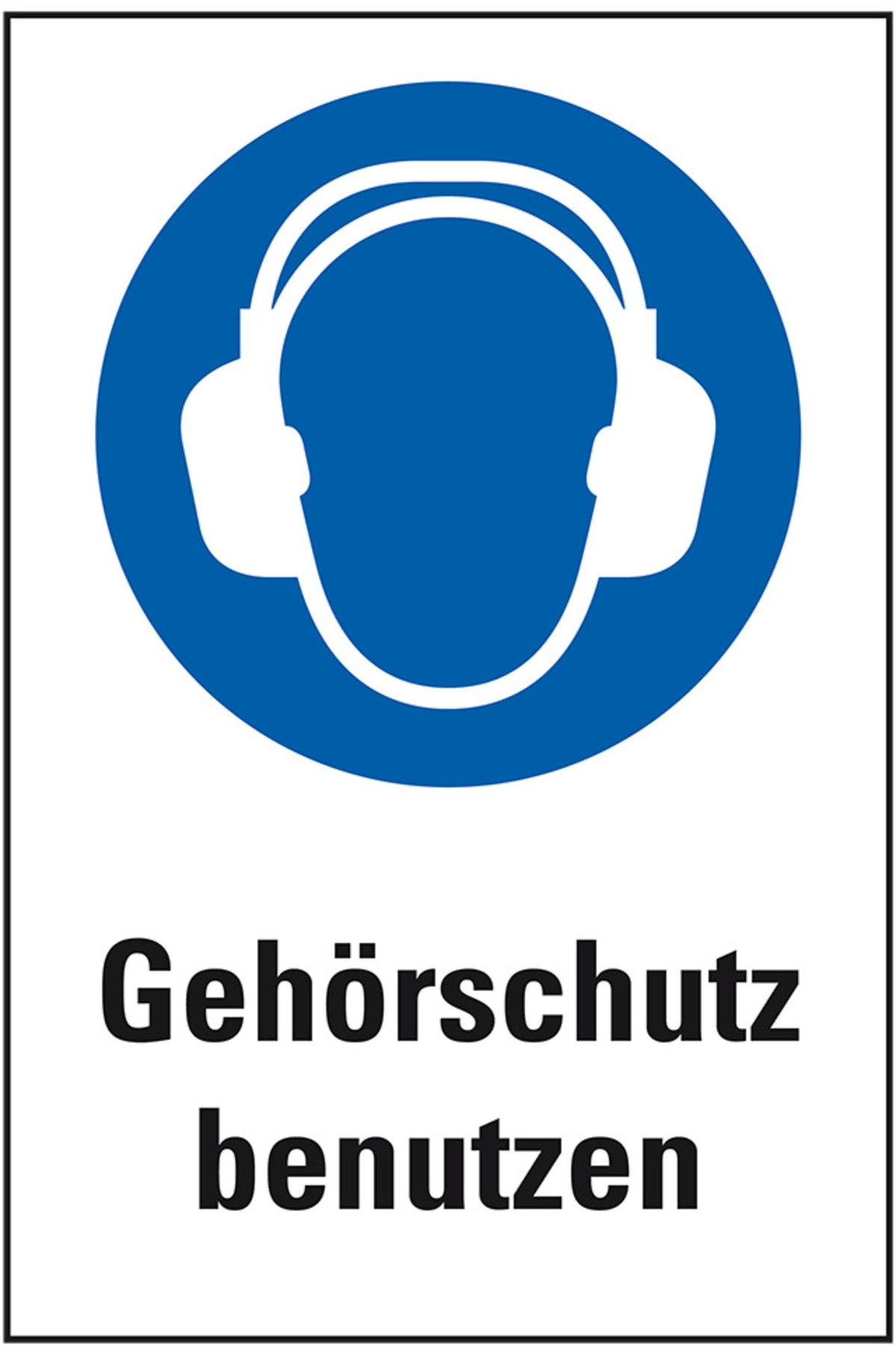 Mit dem Kombi-Gebotszeichen "Gehörschutz benutzen" weisen Sie in Text und Bild auf Verhaltenmaßregeln hin, die für mehr Sicherheit zu beachten sind.
