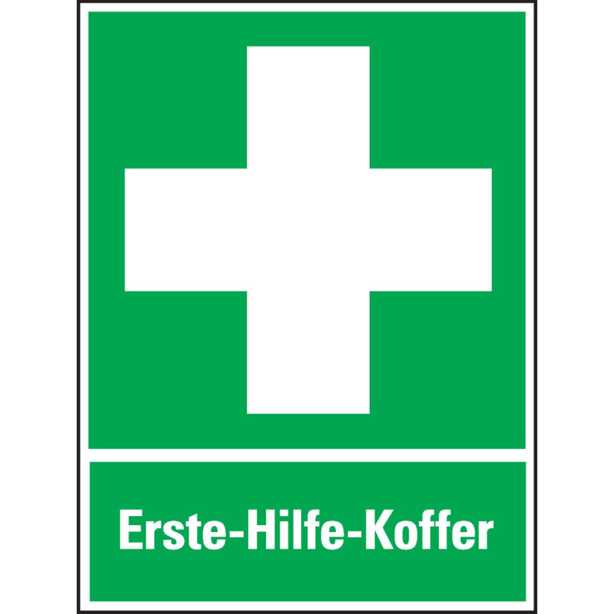 Rettungszeichen zur Standortkennzeichnung von Erste-Hilfe-Materialien mit Zusatztext Erste-Hilfe-Koffer