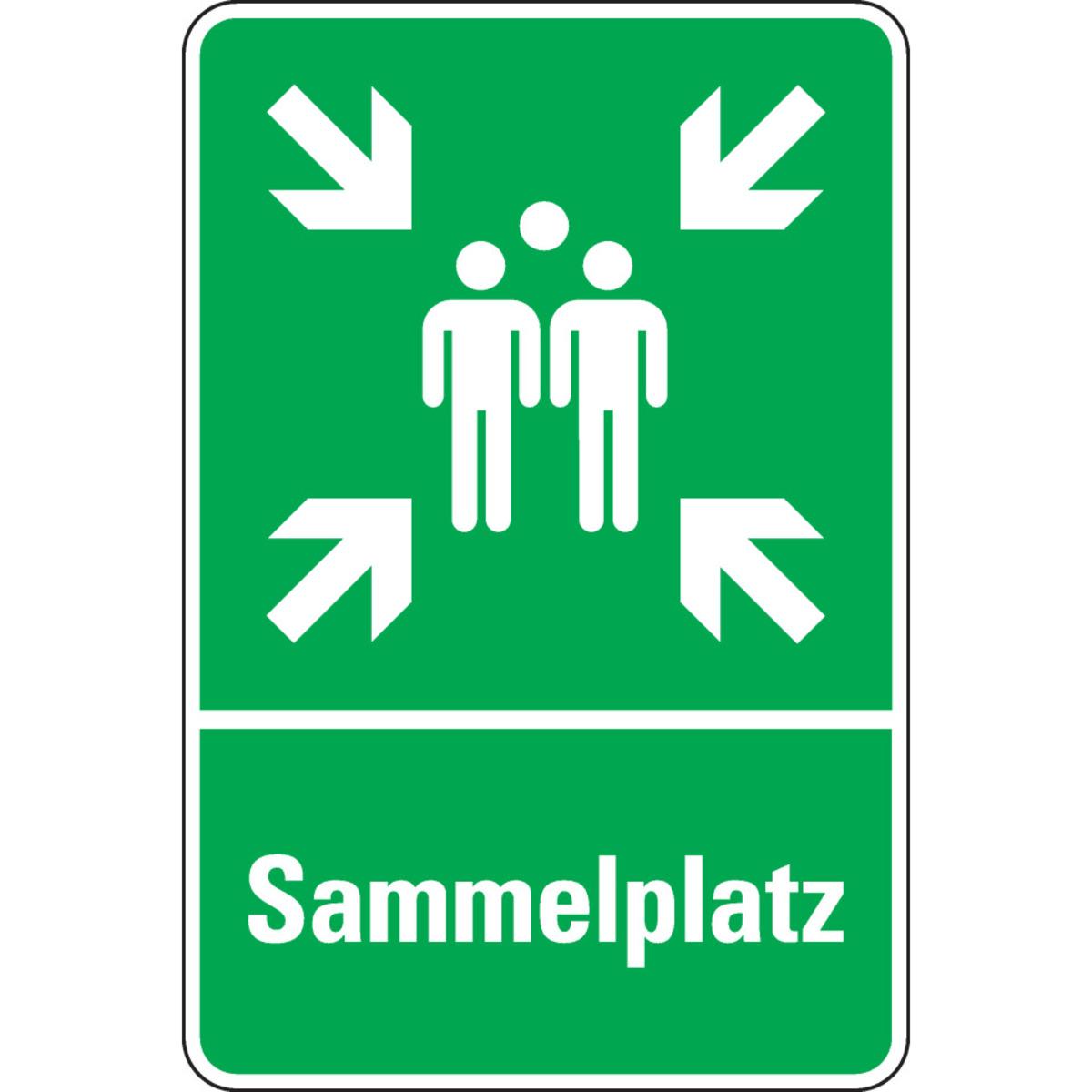 Mit dem Kombi-Rettungszeichen bestehend aus Pikto und Text "Sammelstelle" schützen Sie mit Wort und Bild Leben und Gesundheit Ihrer Mitarbeiter und/oder Besucher, indem Sie Rettungswege und Notfalleinrichtungen eindeutig kennzeichnen.