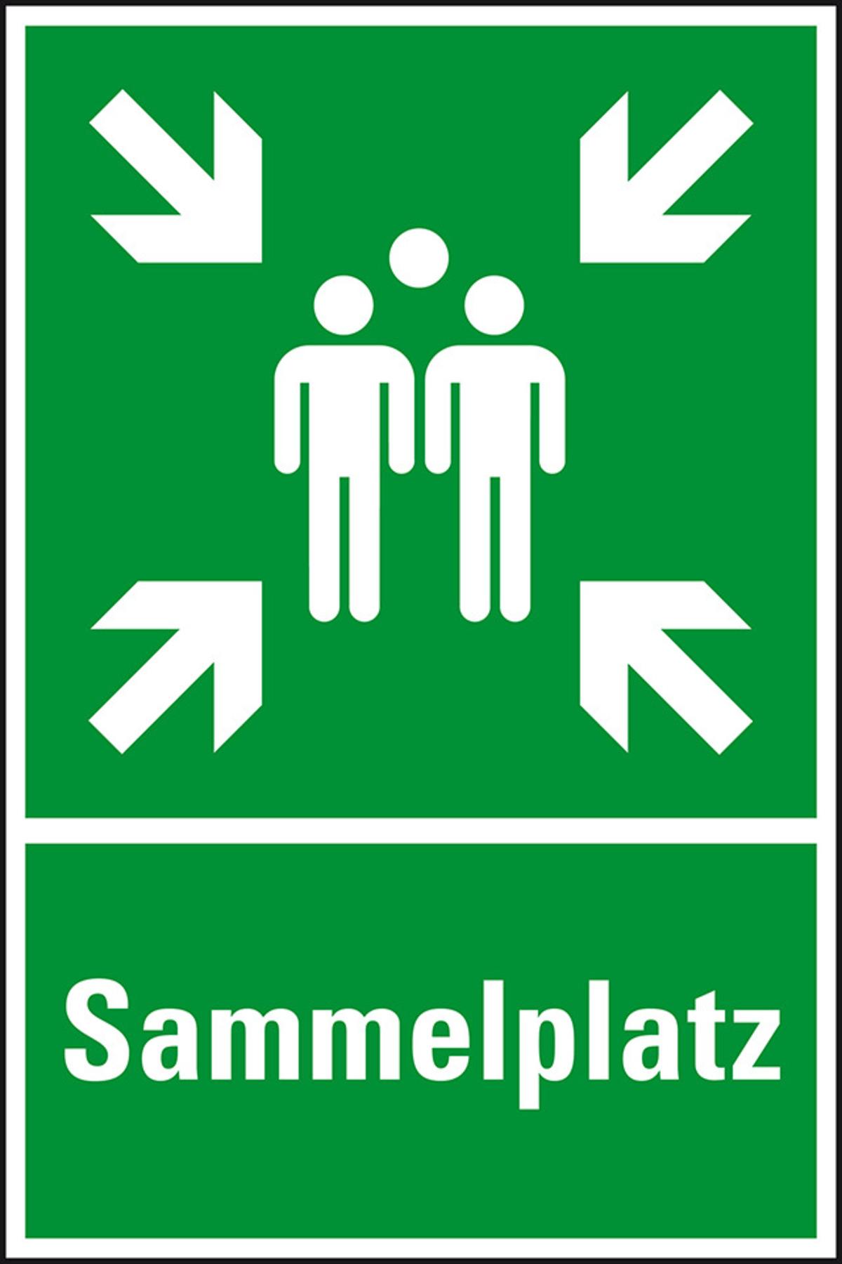 Mit dem Rettungszeichen "Sammelstelle mit Pfeil" schützen Sie Leben und Gesundheit Ihrer Mitarbeiter und/oder Besucher, indem Sie Rettungswege und Notfalleinrichtungen eindeutig kennzeichnen.