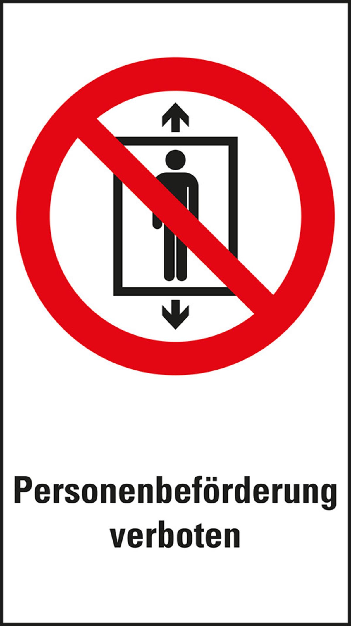 Mit dem Kombischild "Personenbeförderung verboten" beugen Sie Unfällen in entsprechend kritischen Bereichen vor und schützen Ihre Mitarbeiter vor Schaden.