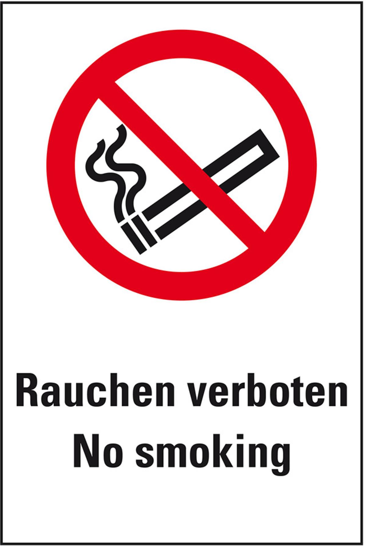 Mit dem zweisprachigen Kombischild "Rauchen verboten - No smoking" weisen Sie in Text und Bild auf Verbote und Verhaltensmaßregeln hin. Durch die Kombination aus Piktogramm und Text ist das Schild besonders gut verständlich.