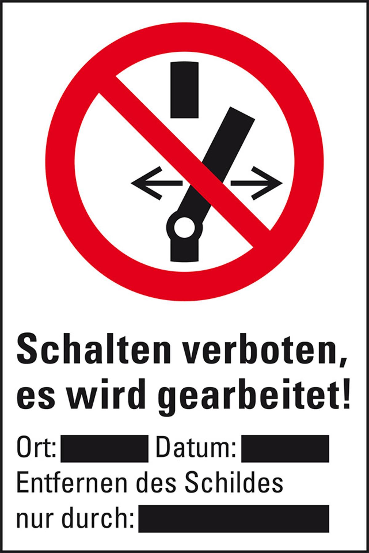 KSIGN Kombi-Verbotsschild Schalten verboten, es wird gearbeitet Ort: Datum: Entfernen des Schildes nur durch: ASR/ISO