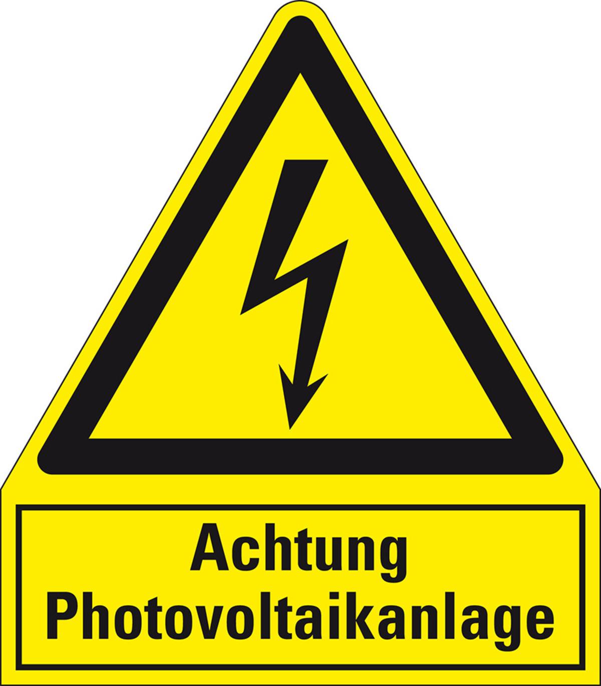 Gefahren müssen gut sichtbar gekennzeichnet werden. Mit dem Kombi-Warnschild "Achtung Photovoltaikanlage" weisen Sie in Wort und Bild auf bestehende Gefahren hin und tragen so zum Schutz Ihrer Mitarbeiter, Besucher und/oder Passanten bei.