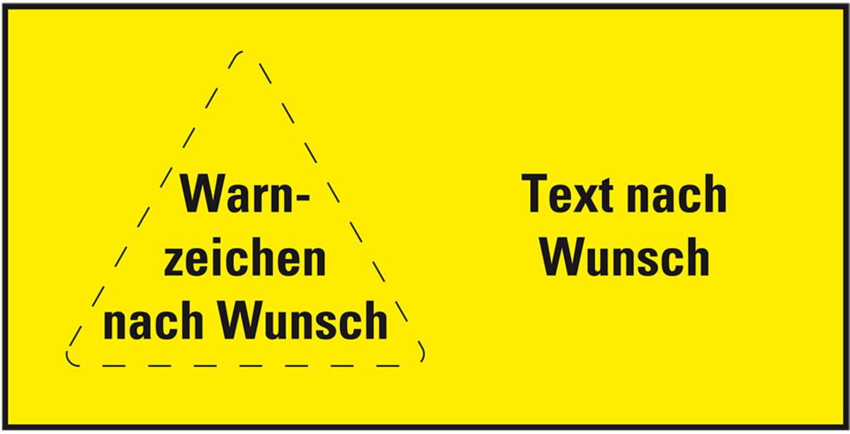 Auswahl: Warnschild, mit Text und Pikto nach Wunsch, Folie, selbstklebend, 74x37mm, 10/Bogen