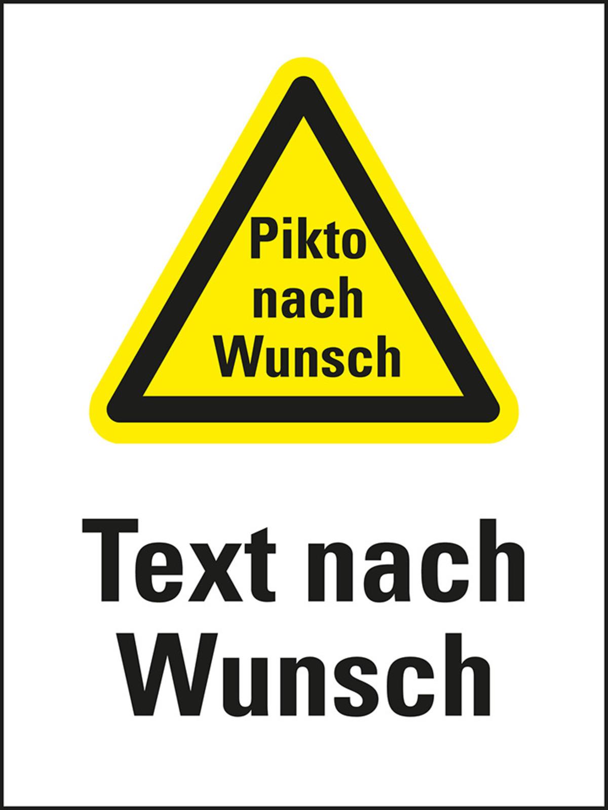 Auswahl: Kombischild, Text und Warnpikto nach Wunsch, ASR/DIN/ISO, Folie, 100x200mm