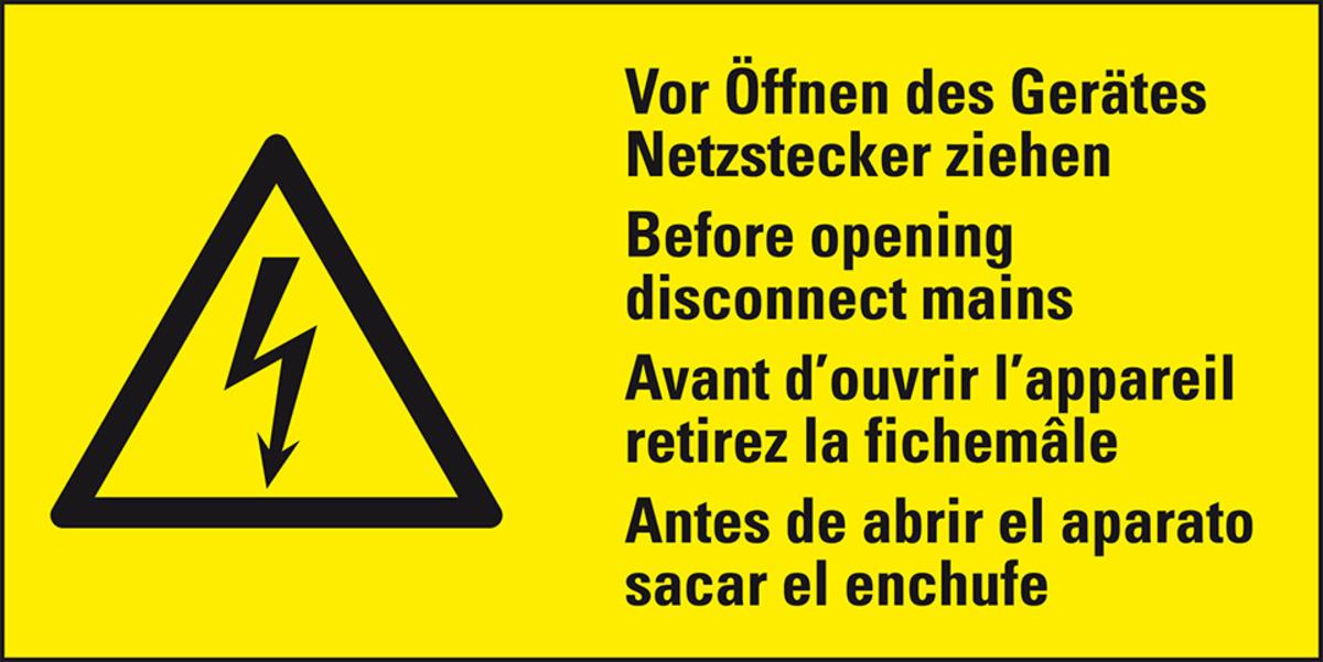 Auswahl: Warn-Kombisch.Vor Öffnen...Netzstecker ziehen, RoHS konform, 4-spr., Folie, 74x37mm