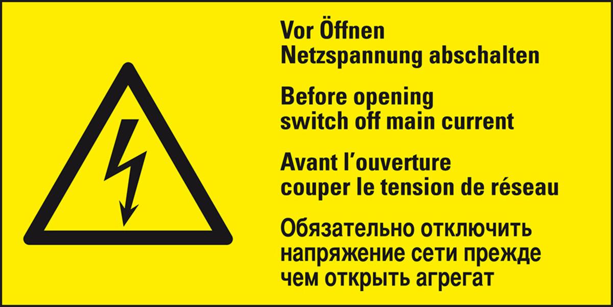KSIGN Kombi-Warnschild Vor Öffnen Netzspannung abschalten deutsch, englisch, französisch, russisch praxisbewährt