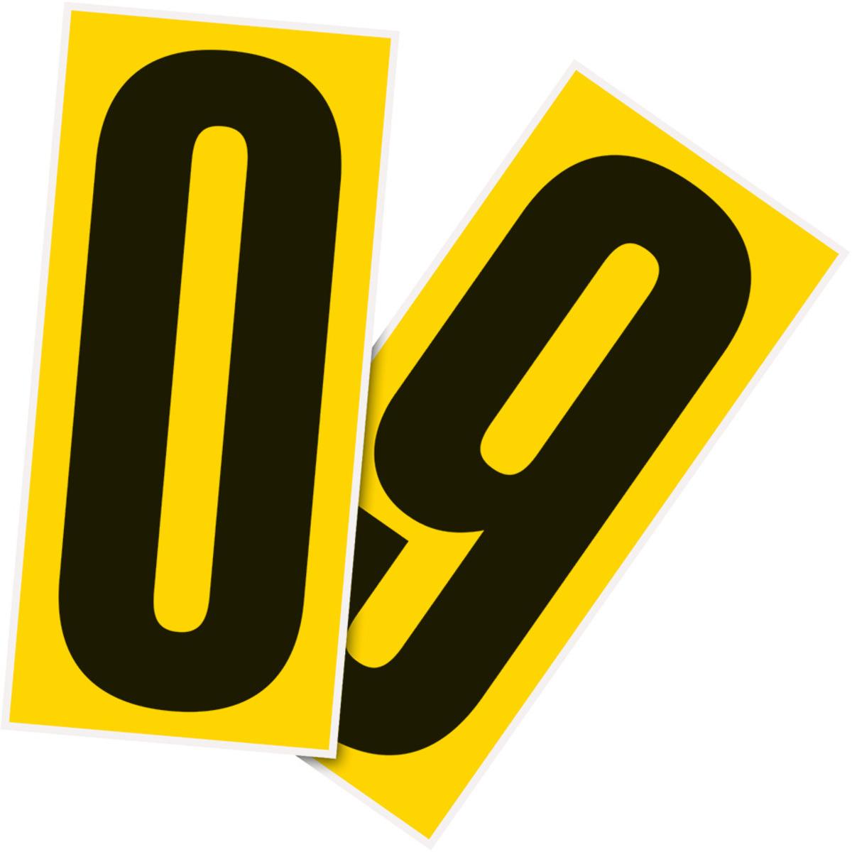 Auswahl: Kombipackung Ziffer 0-9, gelb/schwarz, Folie, Schrifthöhe 50mm, 22x57mm, 16 je Ziffer/VE