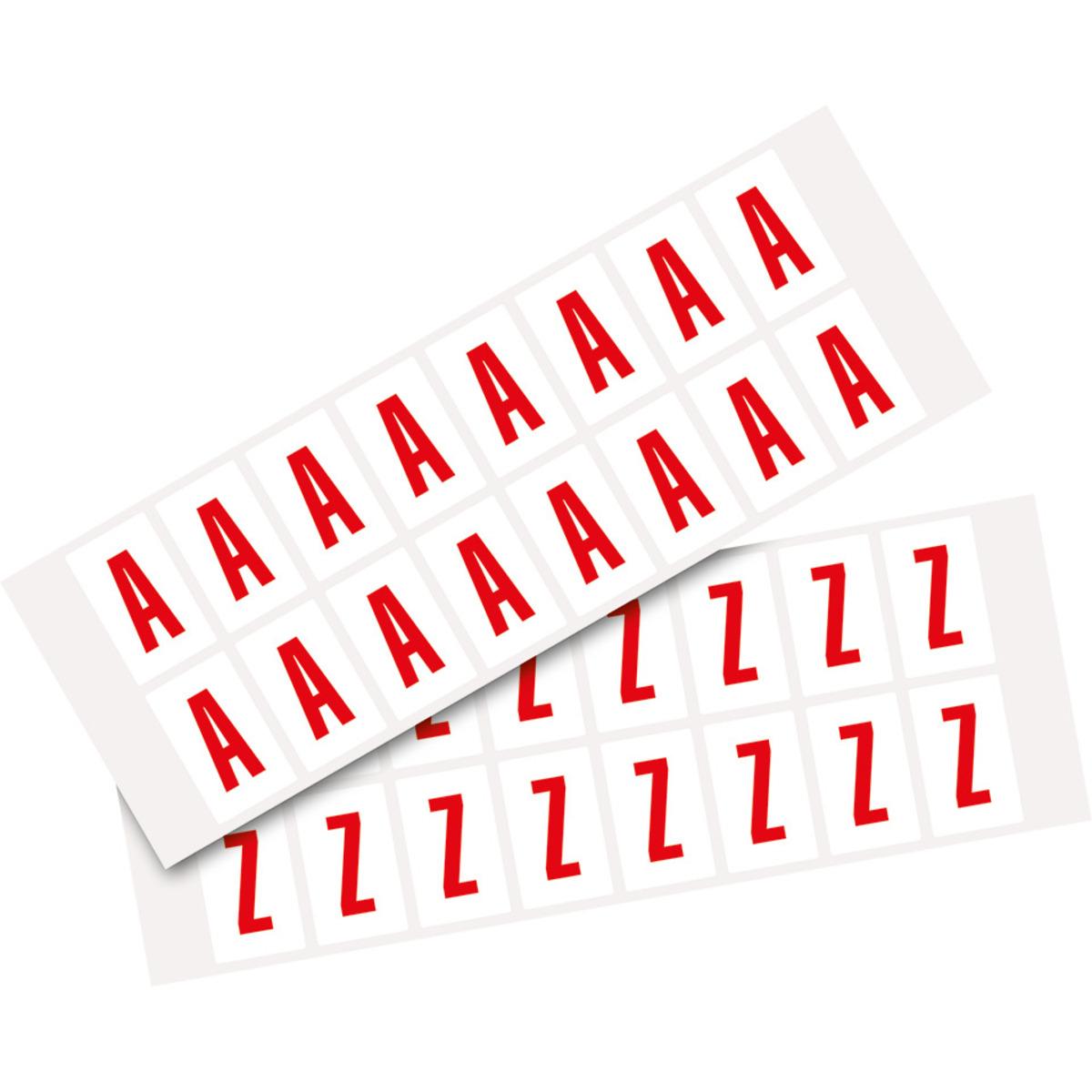 Auswahl: Kombipackung Buchstabe A-Z, weiß/rot, Folie, Schrifthöhe 50mm, 22x57mm, 8 je Buchstabe/VE
