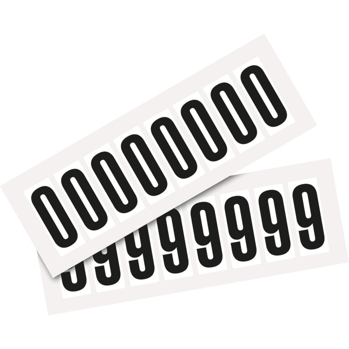 Auswahl: Kombipackung Ziffer 0-9, weiß/schwarz, Folie, Schrifthöhe 50mm, 22x57mm, 16 je Ziffer/VE