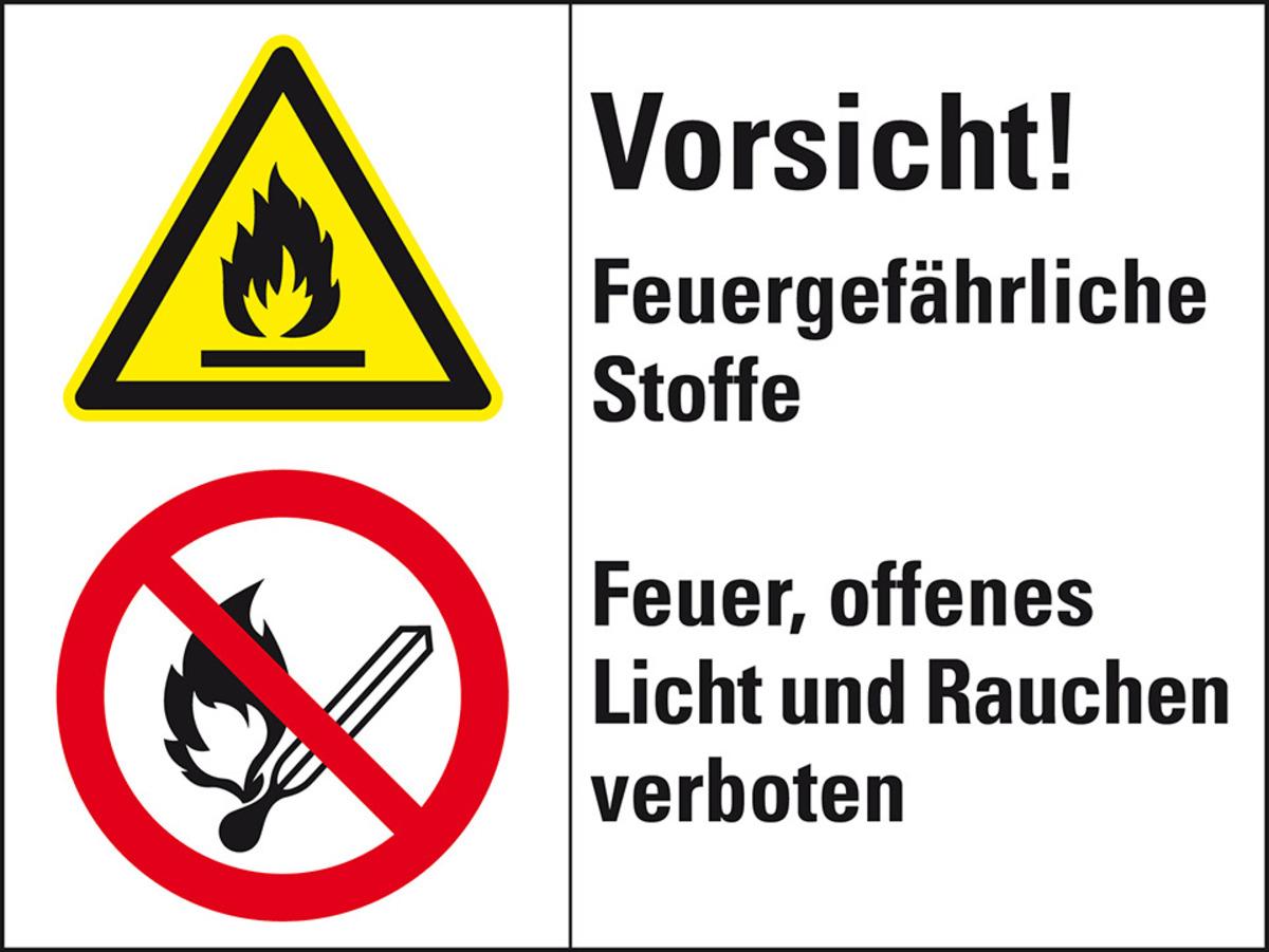 Auswahl: Kombischild mit Symbolen Vorsicht! Feuergef..., ASR/ISO, Folie, selbstkl., 200x150mm