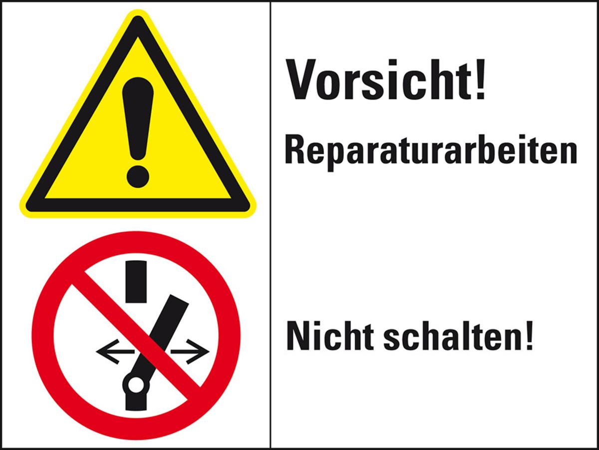Auswahl: Kombischild mit Symbolen Vorsicht!Reparaturarbeiten..., Folie, selbstkl., 200x150mm