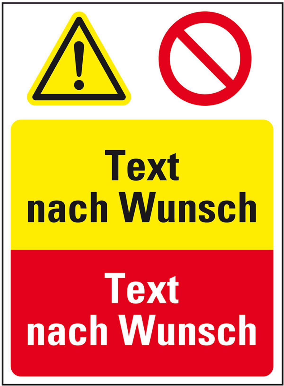 Auswahl: Kombischild Warn-und Verbotszeichen mit Text nach Wunsch, Kunststoff, 300x400mm