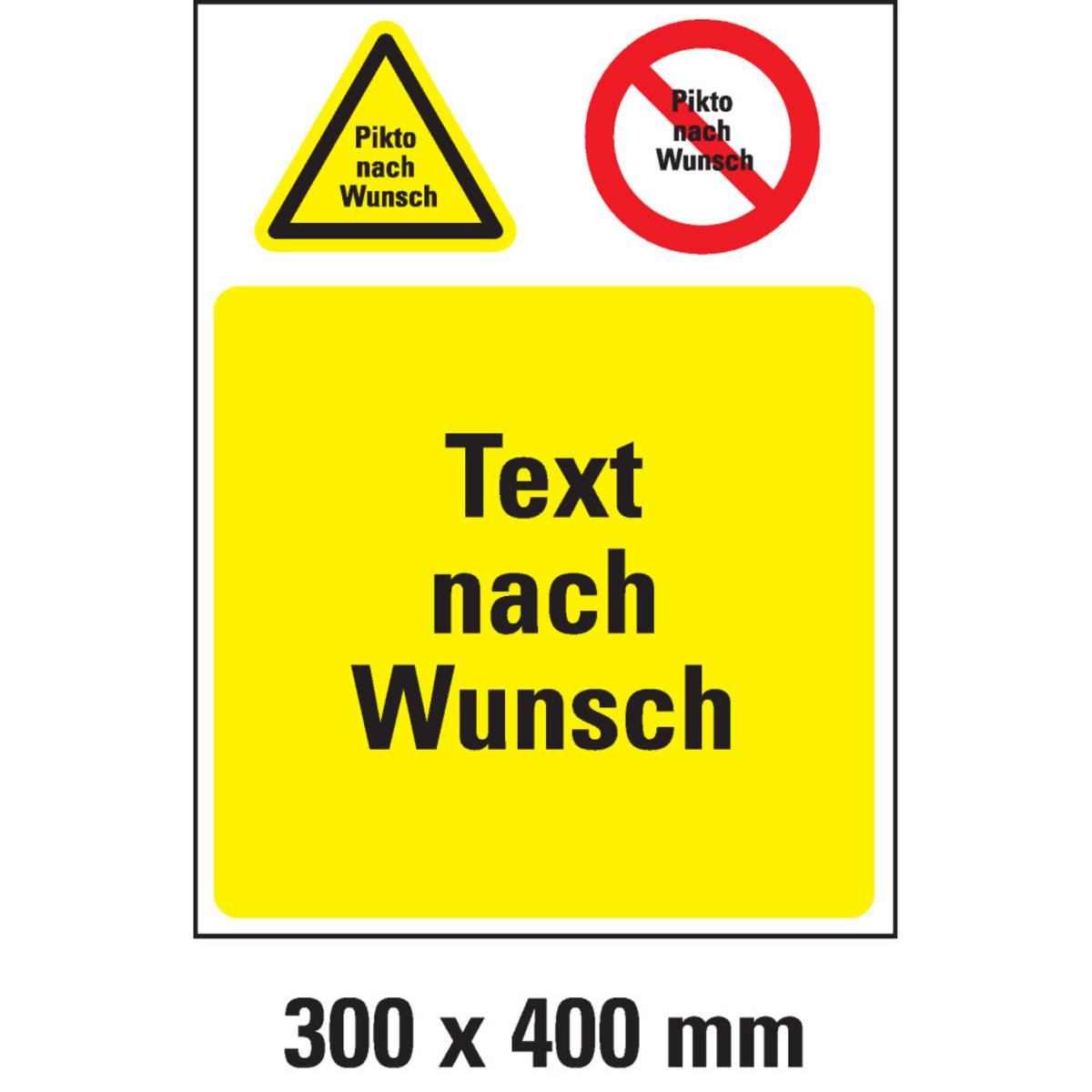 Kombischilder nach Wunsch, mit 1 Warn- und Verbotspikto und Textfeld