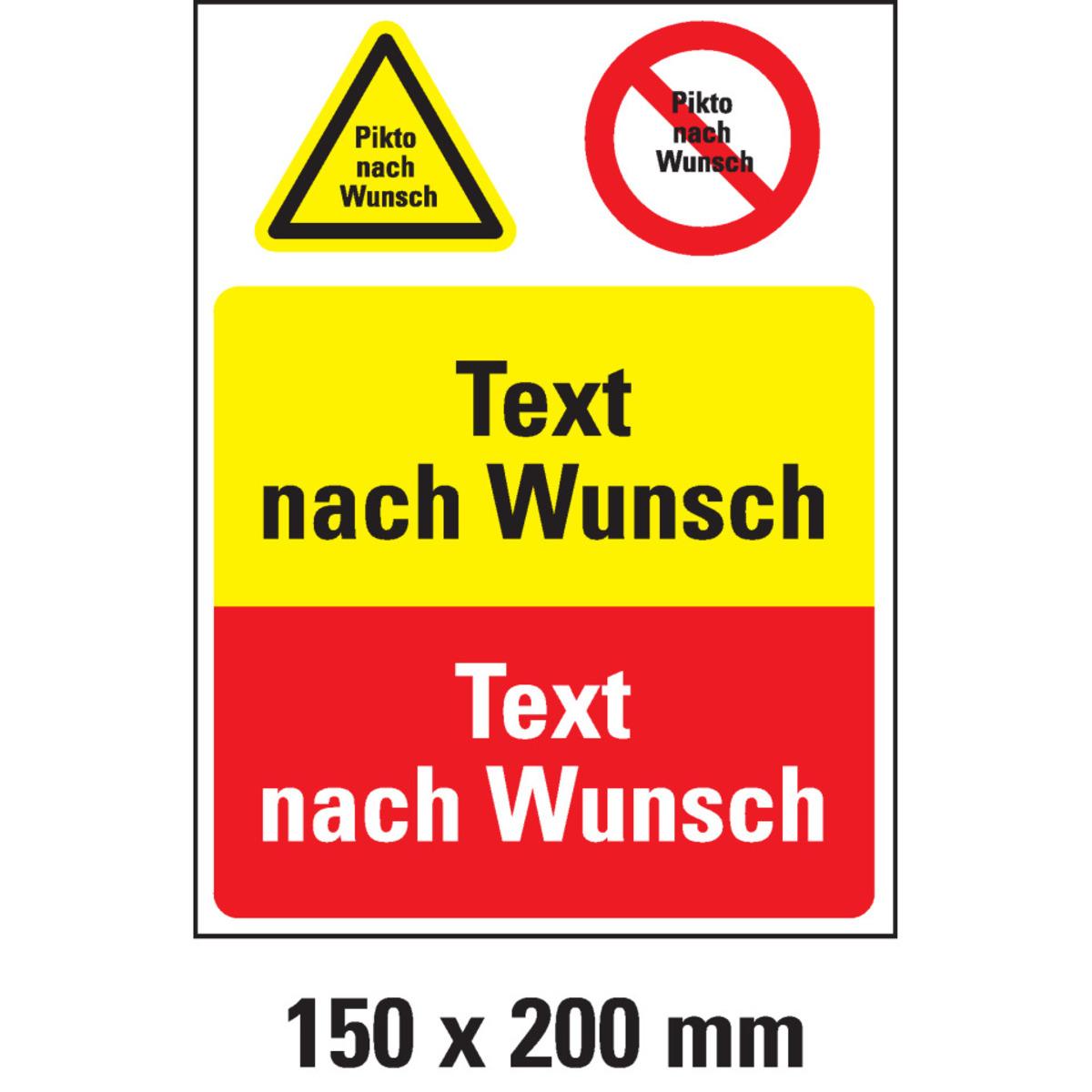 Kombischild nach Wunsch, 1 Warn- und Verbotspikto, 2 Textfelder