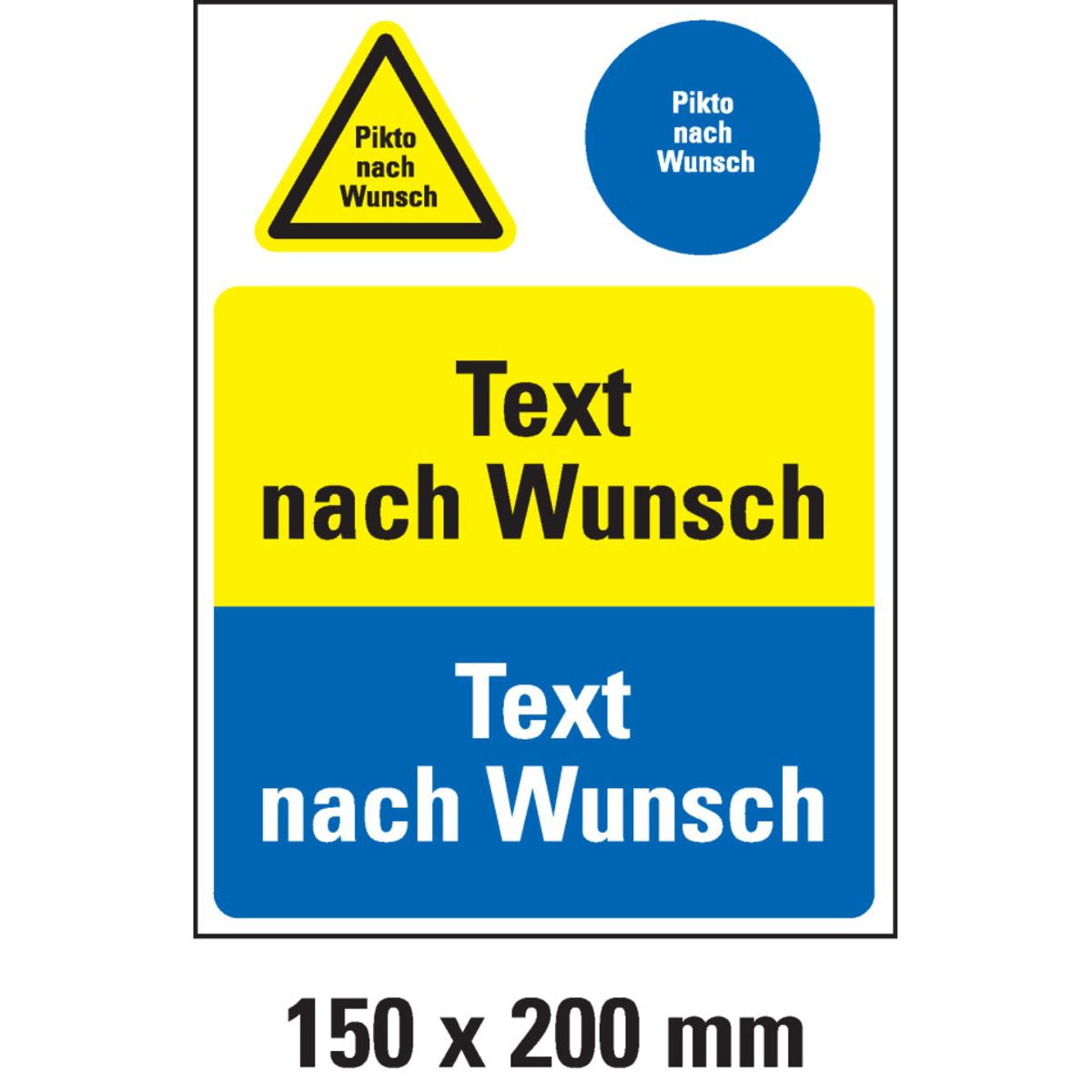 Kombischilder nach Wunsch, 1 Warn- und Gebotspikto, 2 Textfelder
