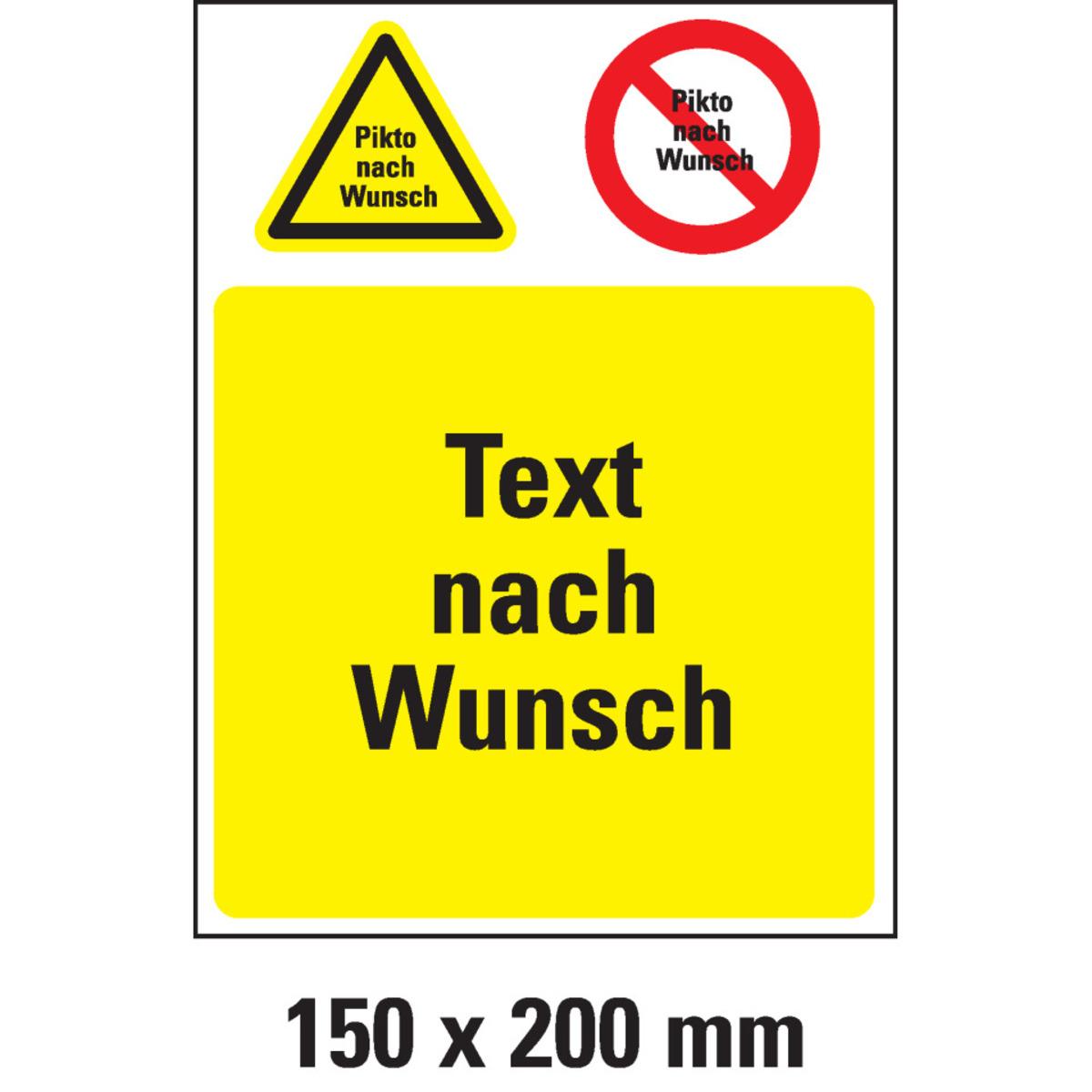 Auswahl: Kombischild n.W., 1 Warn- und Verbotspikto, 1 Textfeld, Folie, 150x200mm