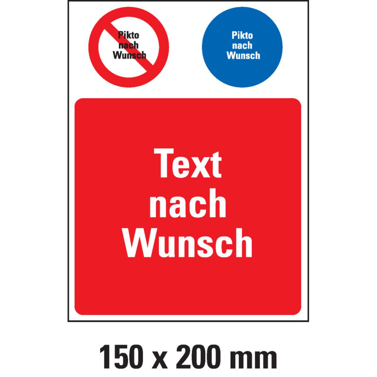 Auswahl: Kombischild n.W., 1 Verbots- und Gebotspikto, 1 Textfeld, Folie, 150x200mm