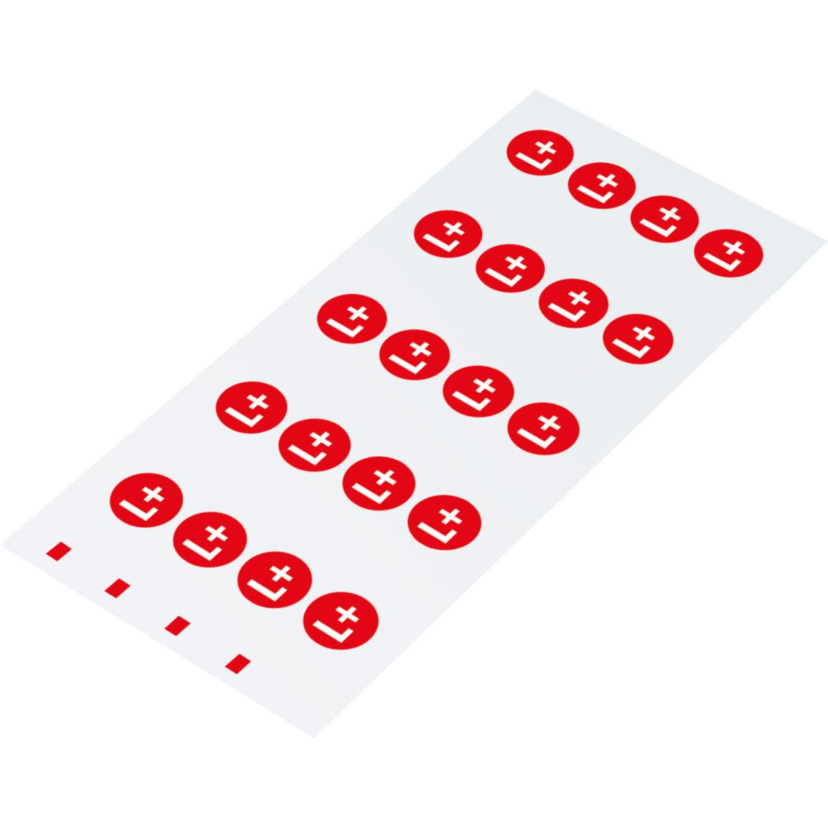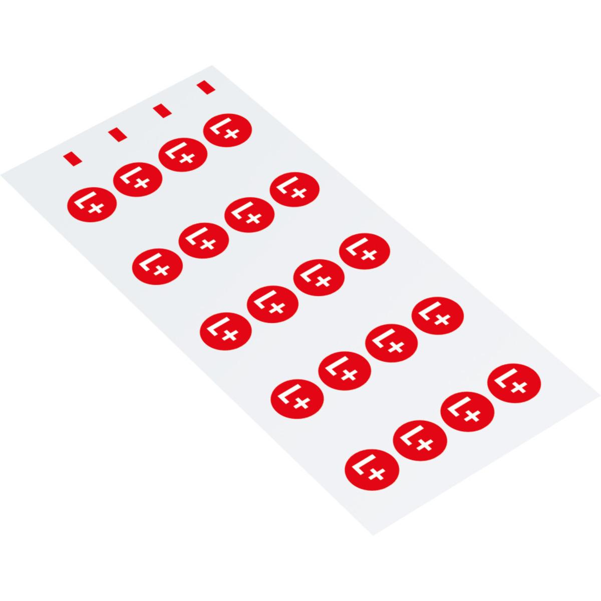 Auswahl: Leiterkennz. Gleichstrom Positiv, RoHS-konform, Folie, selbstkl., Ø 20mm, 20/Bogen
