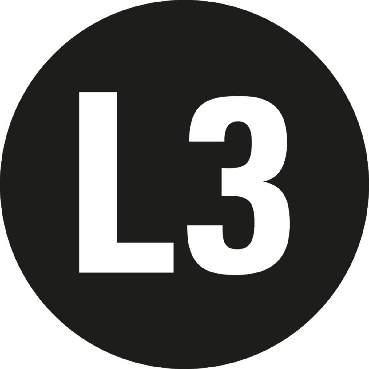 RoHS-konform gefertigtes Leiterkennzeichen "L3 Wechselstromnetz Außenleiter 3". Geräte, die unter Spannung stehen, müssen per Gesetz auffällig mit eindeutiger Kabelkennzeichnung markiert sein.