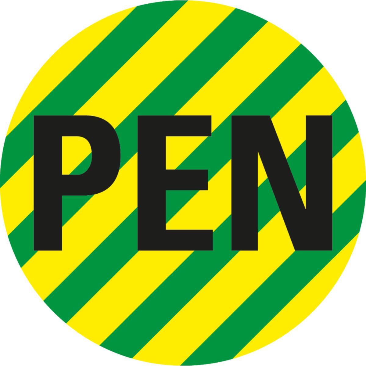 RoHS-konform gefertigtes "Leiterkennzeichen PEN Neutralleiter mit Schutzfunktion". Geräte, die unter Spannung stehen, müssen per Gesetz auffällig mit eindeutiger Kabelkennzeichnung markiert sein.