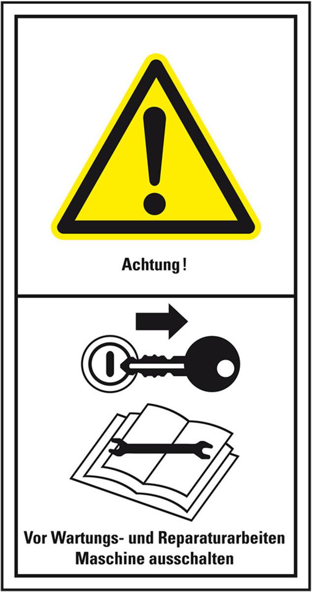 Maschinenkennzeichen, welches darauf hinweist, das Ausschalten vor Wartungs- und Reperaturarbeiten zu beachten.