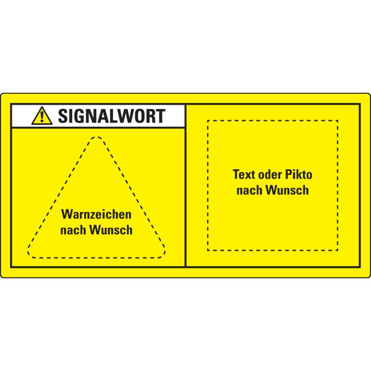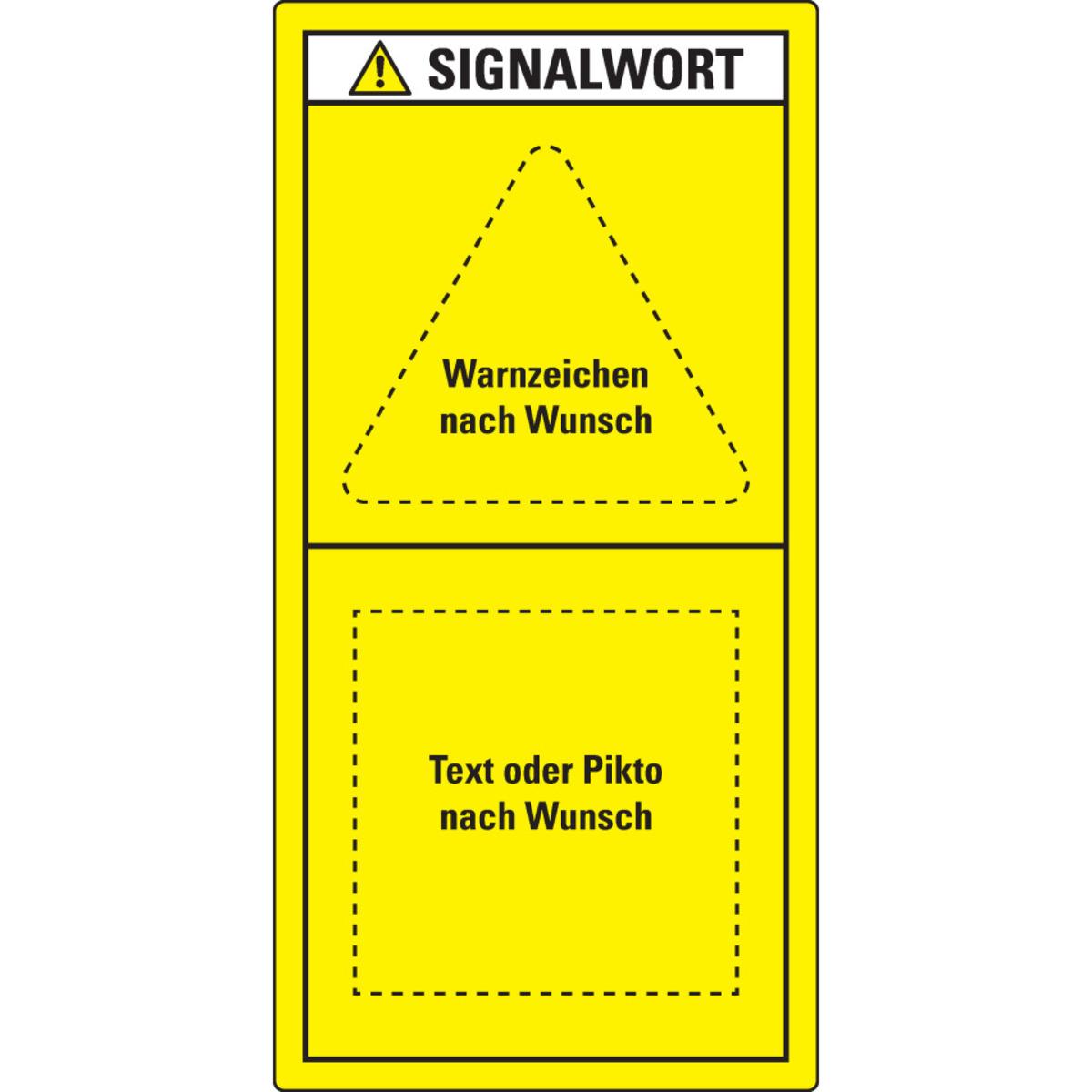 Individualisierbare Maschinenkennzeichnung mit Warnzeichen, Piktogramm oder Textelement nach Wunsch.