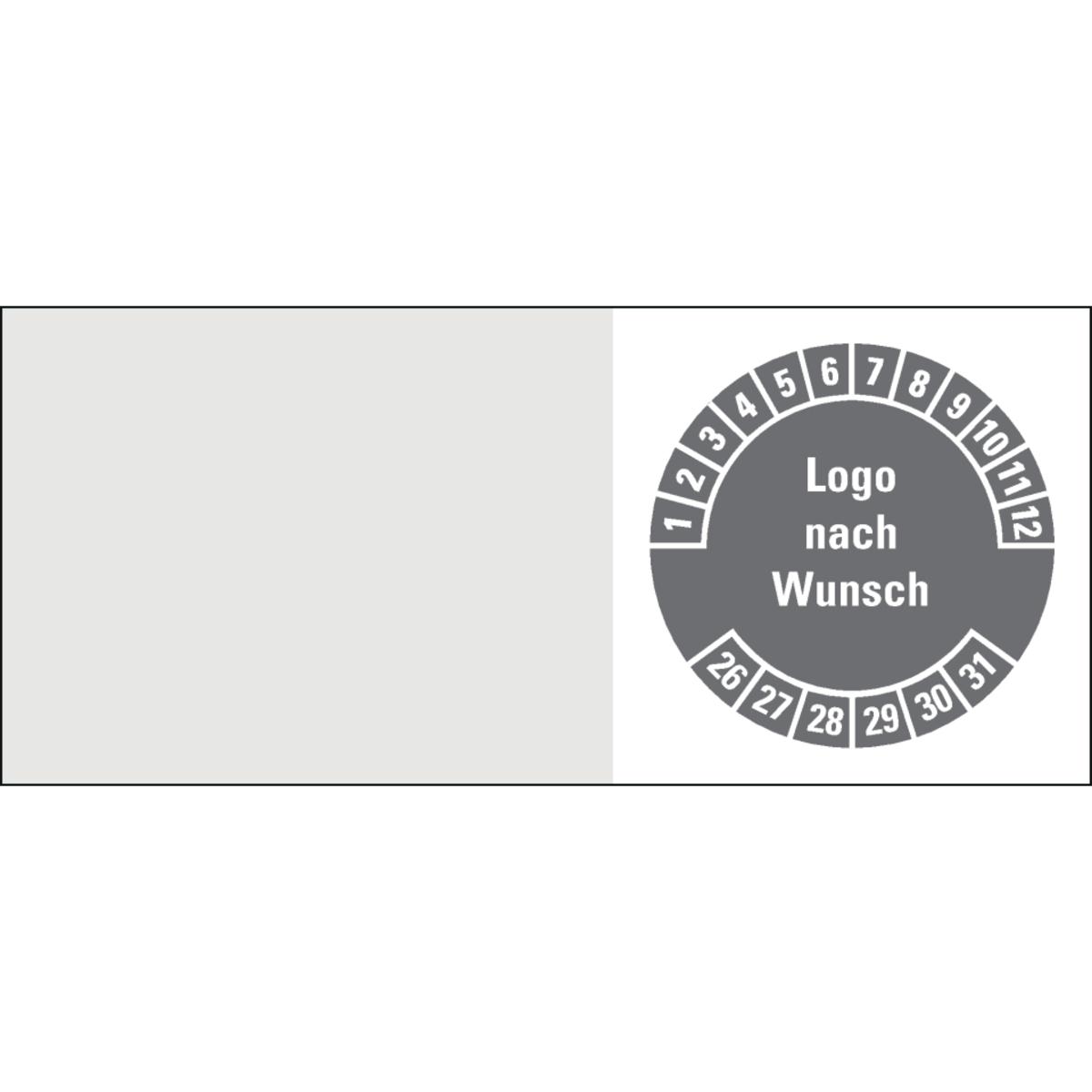 Auswahl: Kabelprüfplakette, Logo nach Wunsch, Monatskranz, Folie, 57x25mm, 6/Bogen
