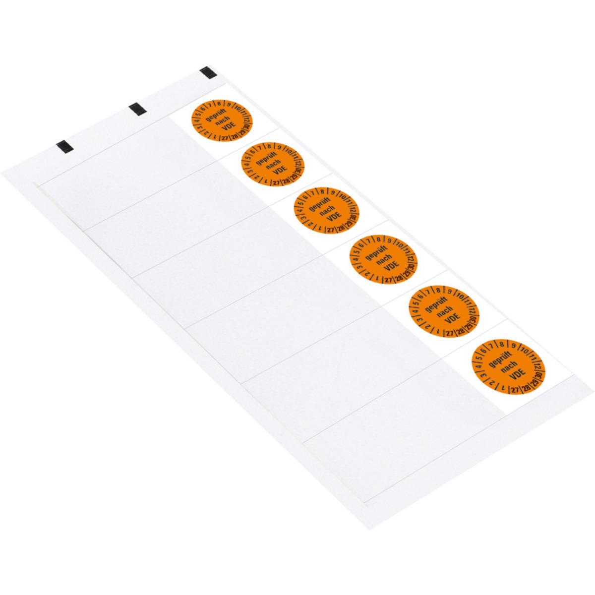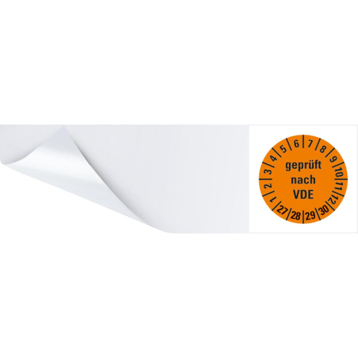 Auswahl: Kabelprüfplakette geprüft nach VDE 27-30, orange, Folie, selbstkl., 57x25mm, 6/BOG