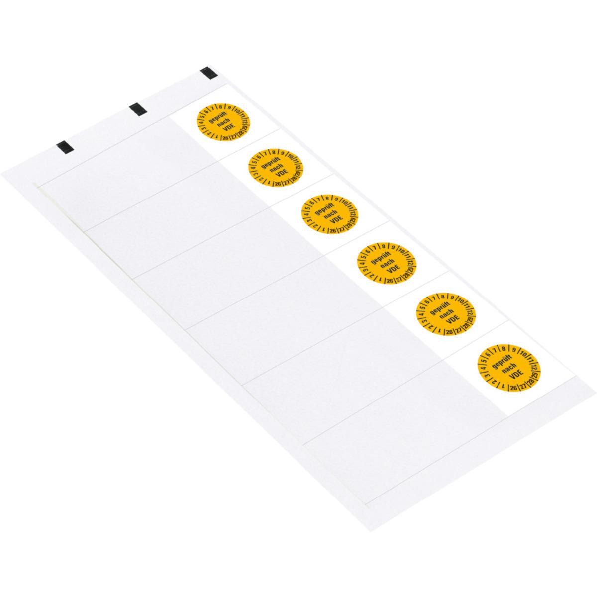 Auswahl: Kabelprüfplakette geprüft nach VDE 26-29, gelb, Folie, 95x25mm, 6/Bogen