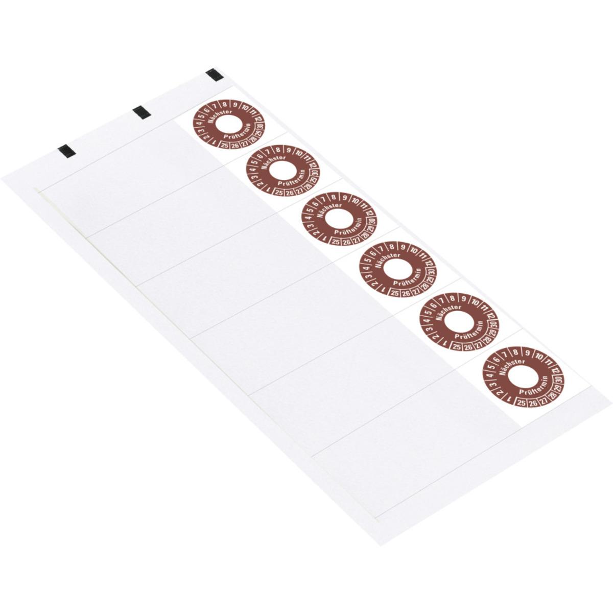 Auswahl: Kabelprüfplakette Nä.Prüftermin 25-30, braun, Folie, selbstkl., 95x25mm, 6/Bogen