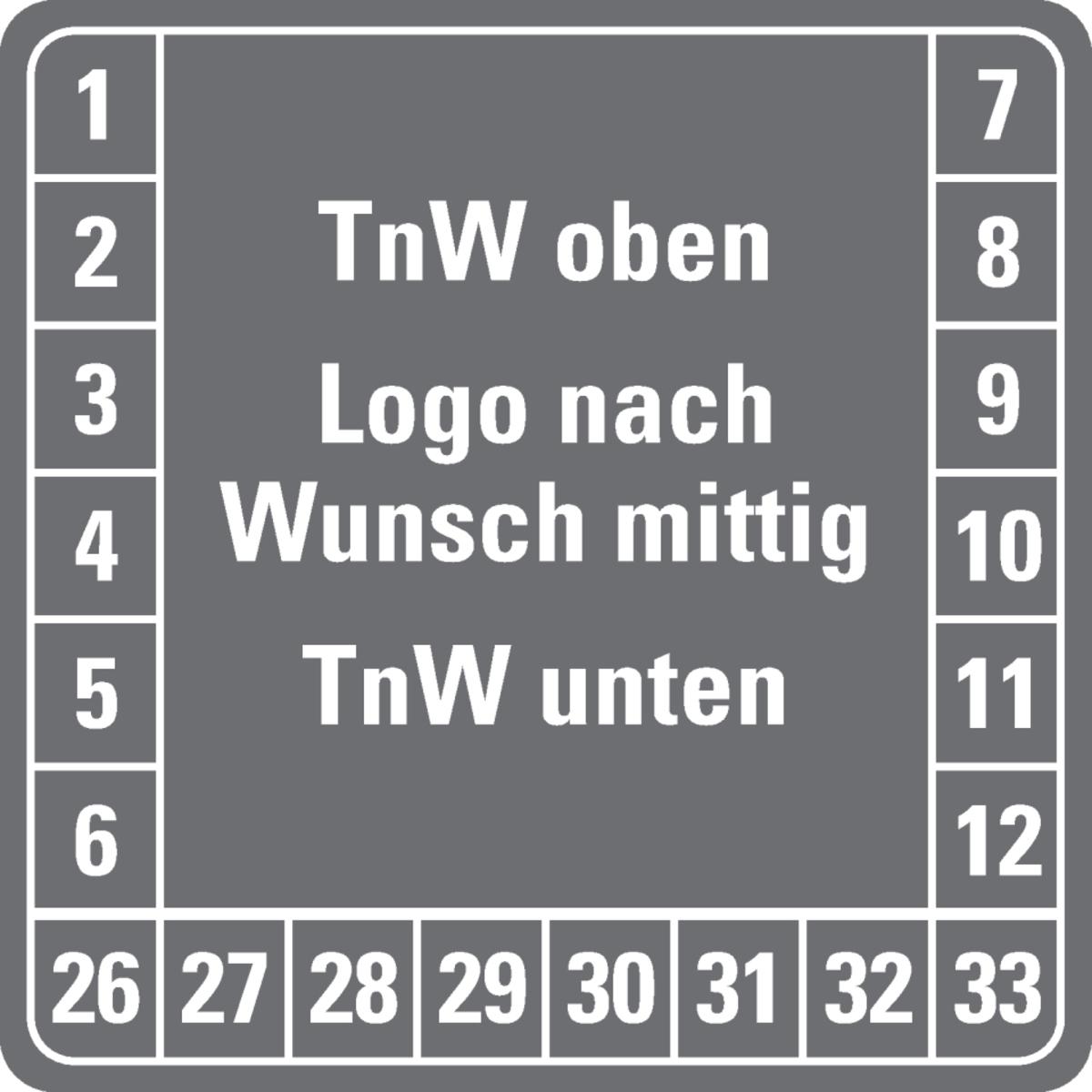 Mehrjahresprüfplakette (quadratisch) nach Wunsch, Text oben/unten, Logo mittig